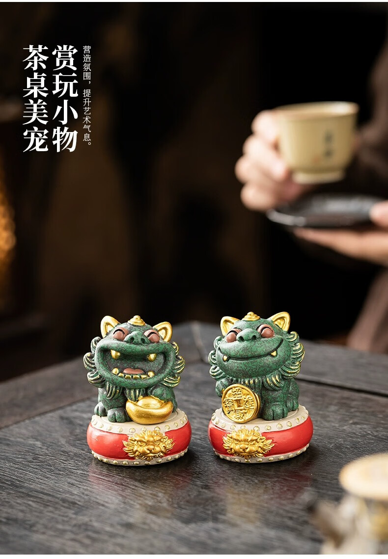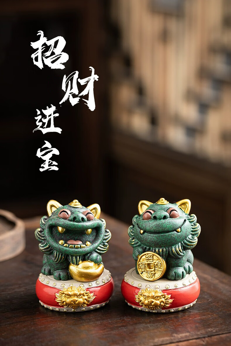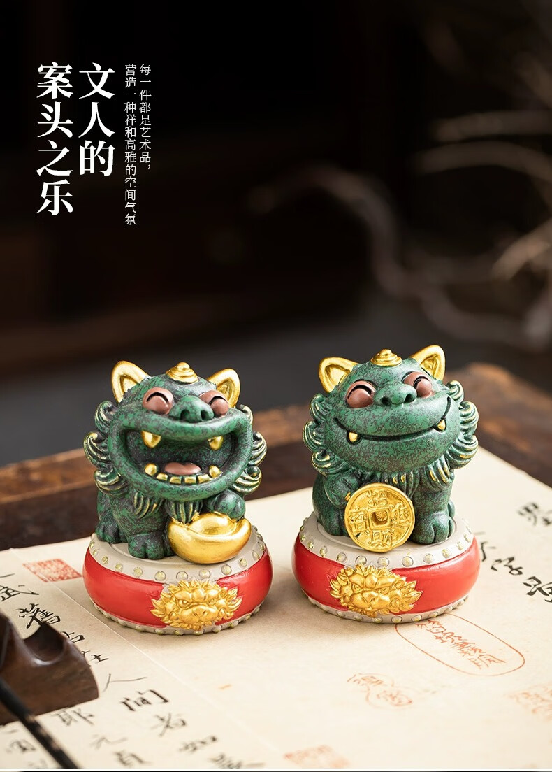 BOSSY Forbidden City Style Cultural Creation Lucky Stone Lion Pair Lucky Fortune Creative Arts and Crafts Ornament Company Personal Souvenir Pair Lucky Fortune Pair Gold + Base + Gift Box