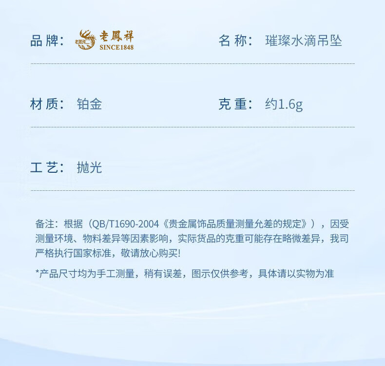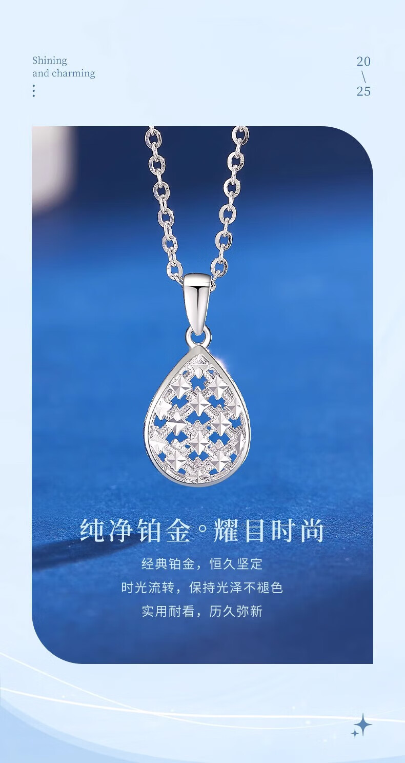 Lao Fengxiang PT950 Platinum Brilliant Water Drop Pendant Necklace for Women Platinum Anniversary Birthday Gift for Girlfriend and Wife PT950 Platinum Brilliant Water Drop Pendant About 1.6g Brand Gift Box