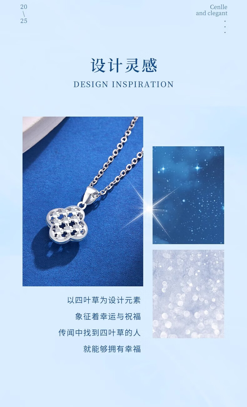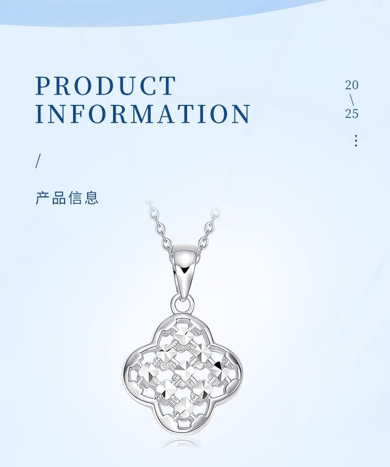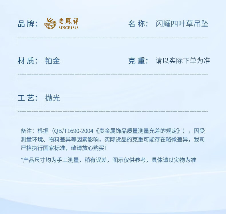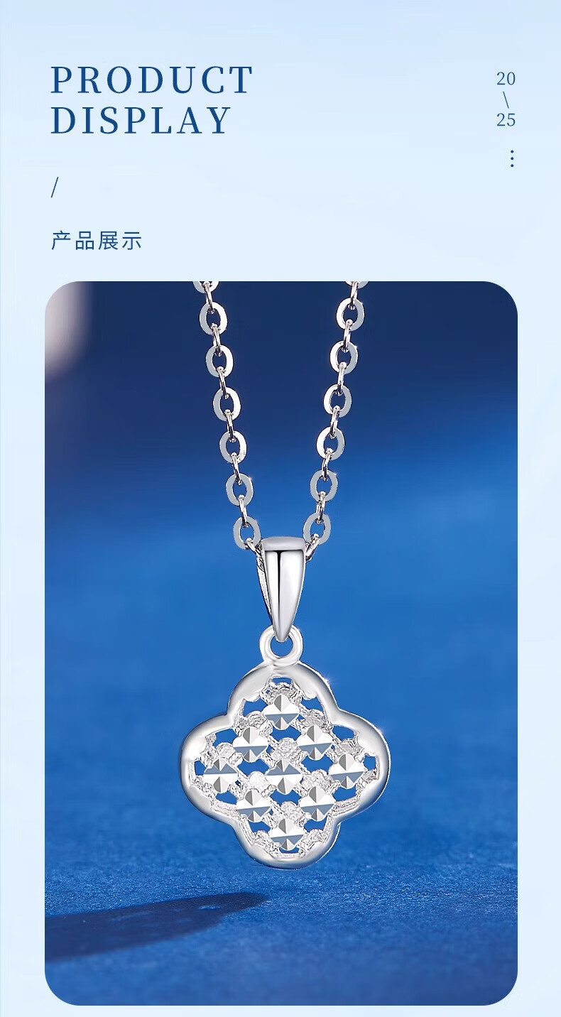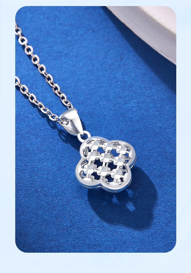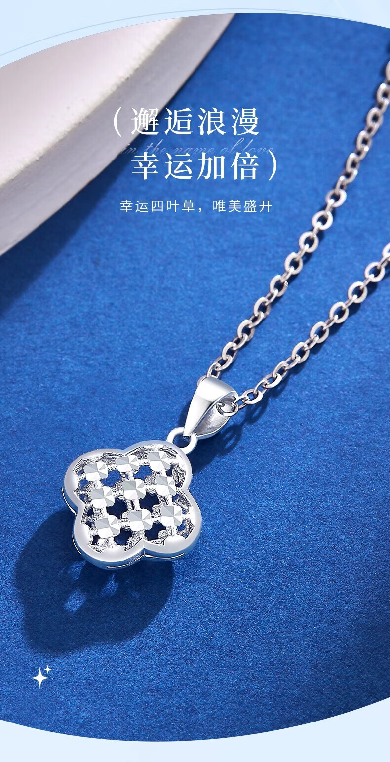 Lao Fengxiang PT950 platinum sparkling four-leaf clover pendant necklace for women new Mid-Autumn Festival birthday gift for girlfriend and wife PT950 platinum crushed ice four-leaf clover pendant about 1.6 free sterling silver chain