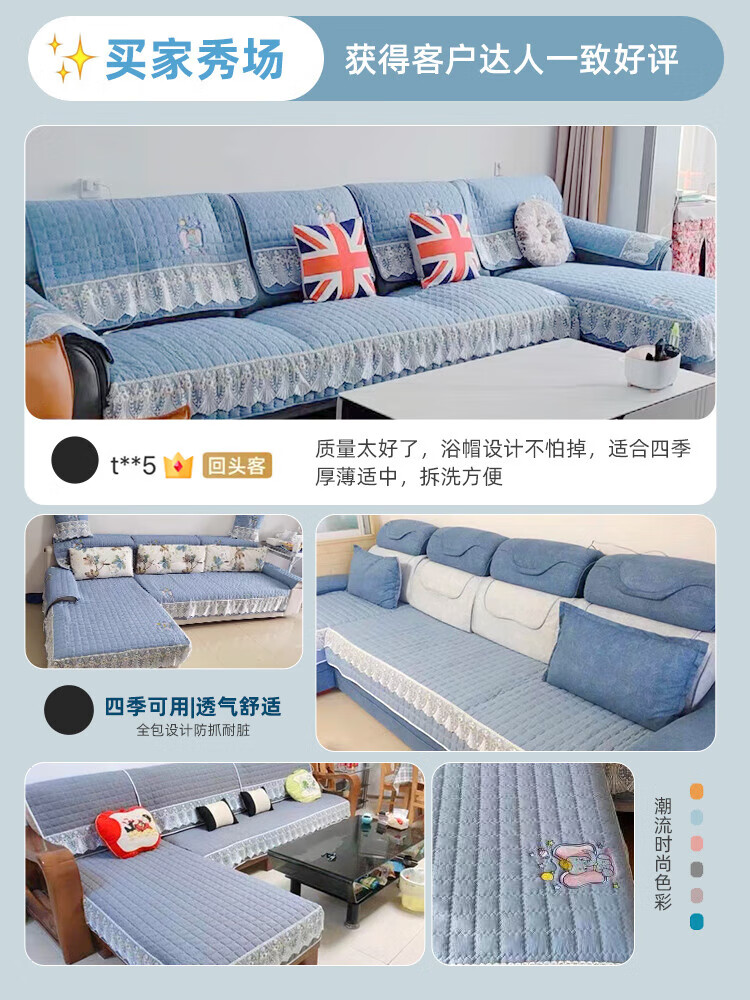 Lange 2025 new sofa cushion set, seat cushion, non-slip, full-cover leather cover, backrest cover, cloth towel, customized for all seasons, Dolphin Bay - blue, soft and comfortable, 90cm*160cm (double seat/concubine seat can be used)