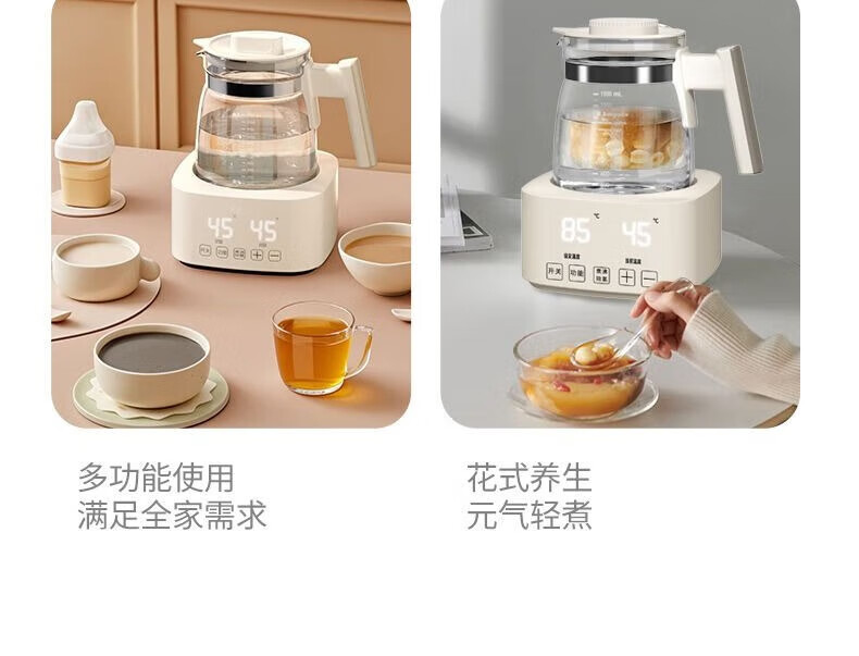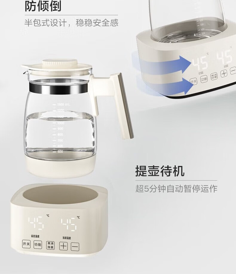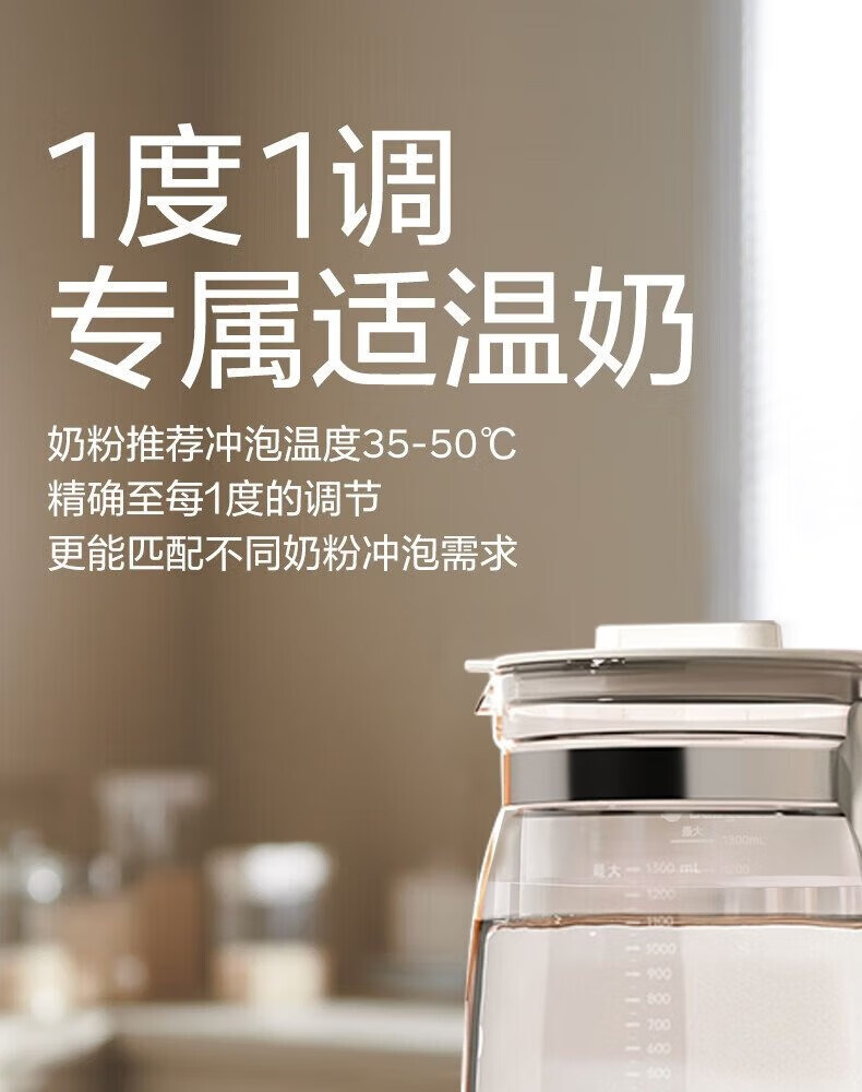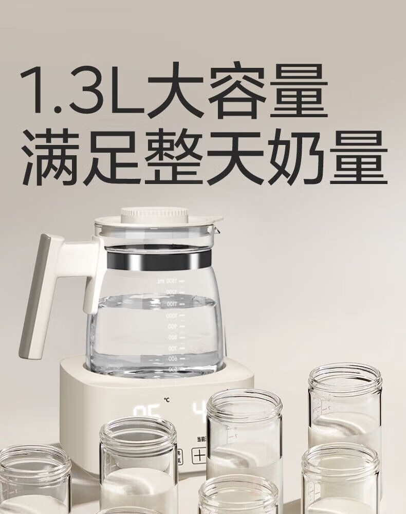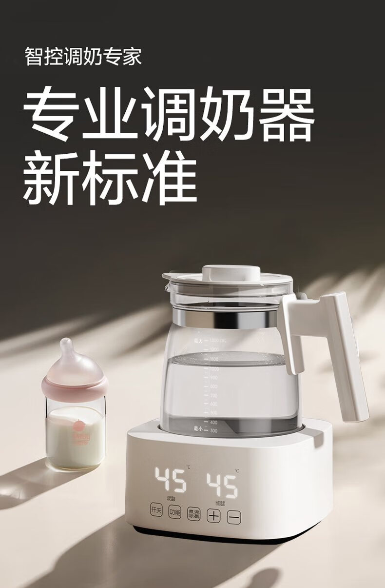 Beshimei baby thermostatic kettle glass milk mixer thermal insulation sterilization kettle household multi-functional automatic milk boiling kettle 316 white upgraded version 1300ml