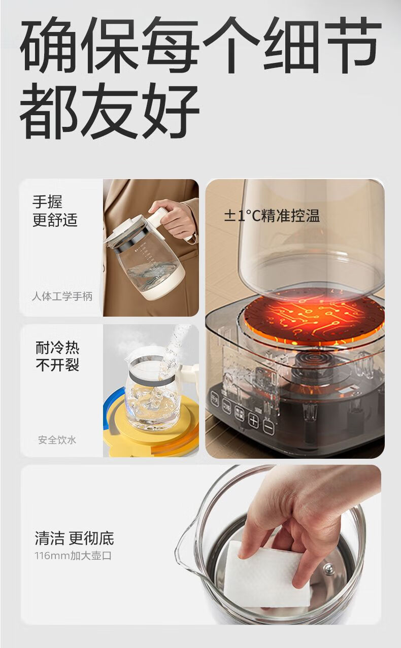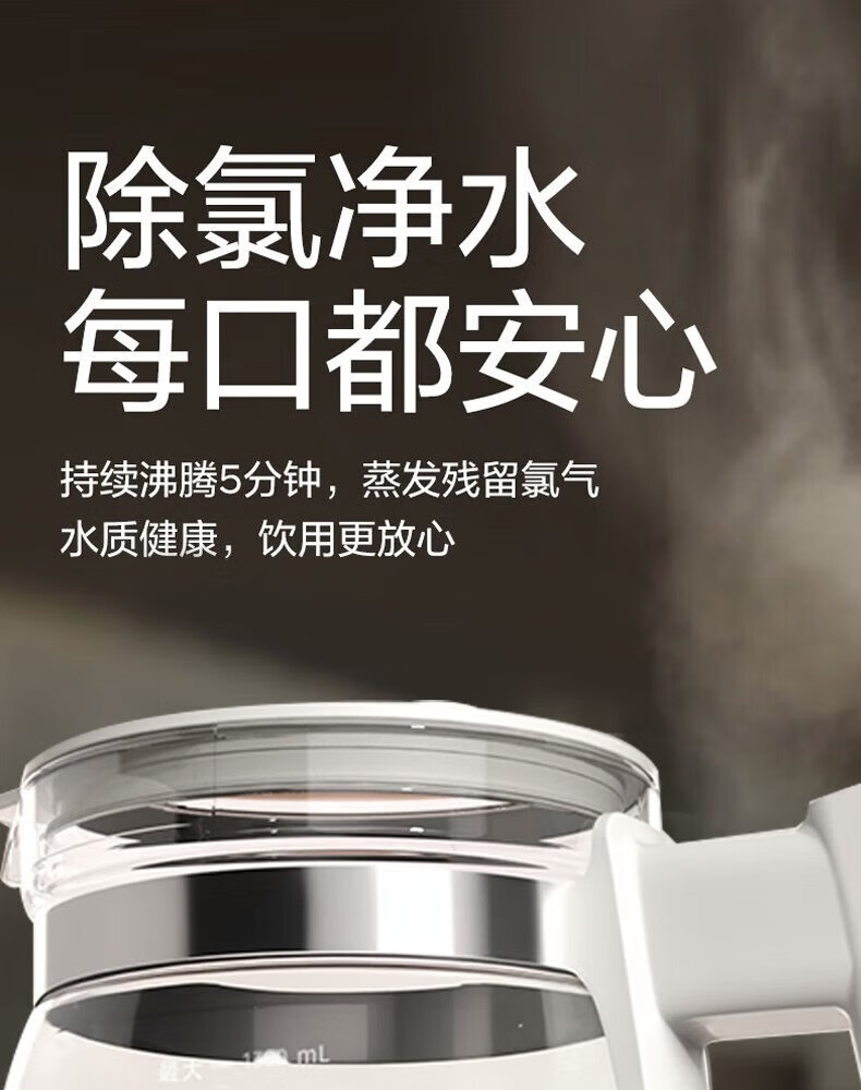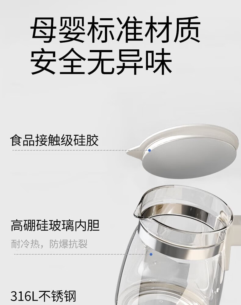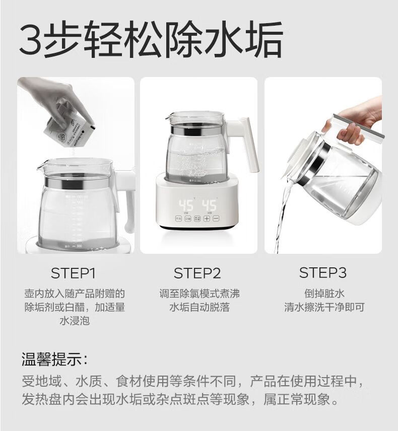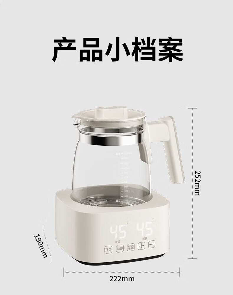 Beshimei baby thermostatic kettle glass milk mixer thermal insulation sterilization kettle household multi-functional automatic milk boiling kettle 316 white upgraded version 1300ml