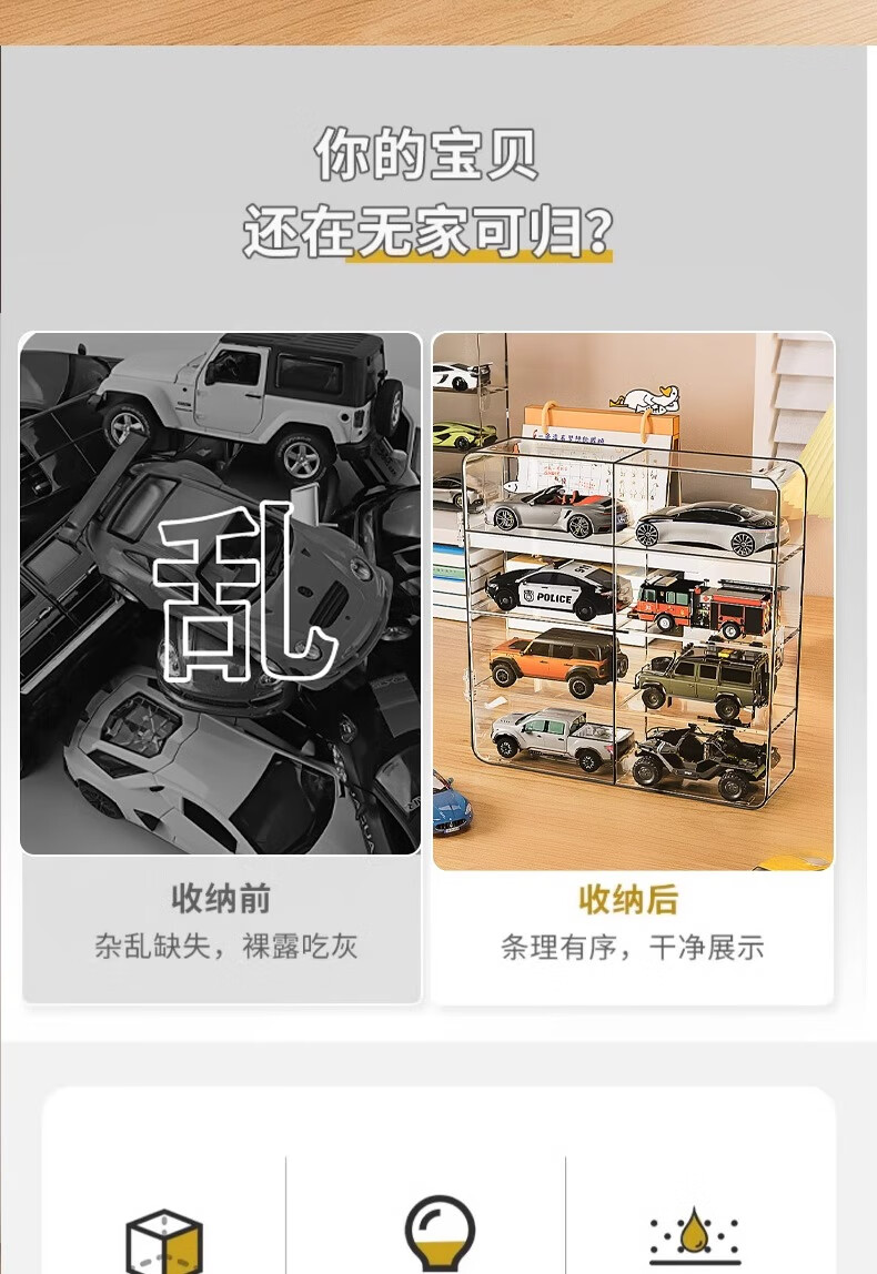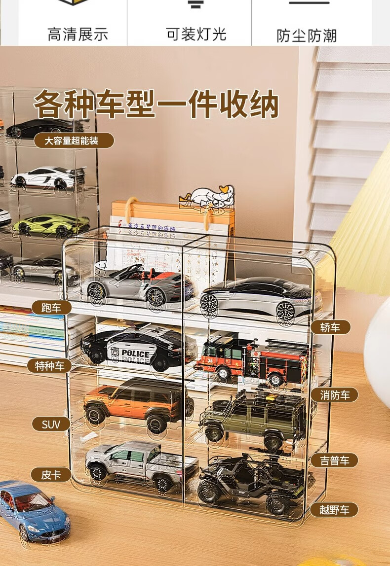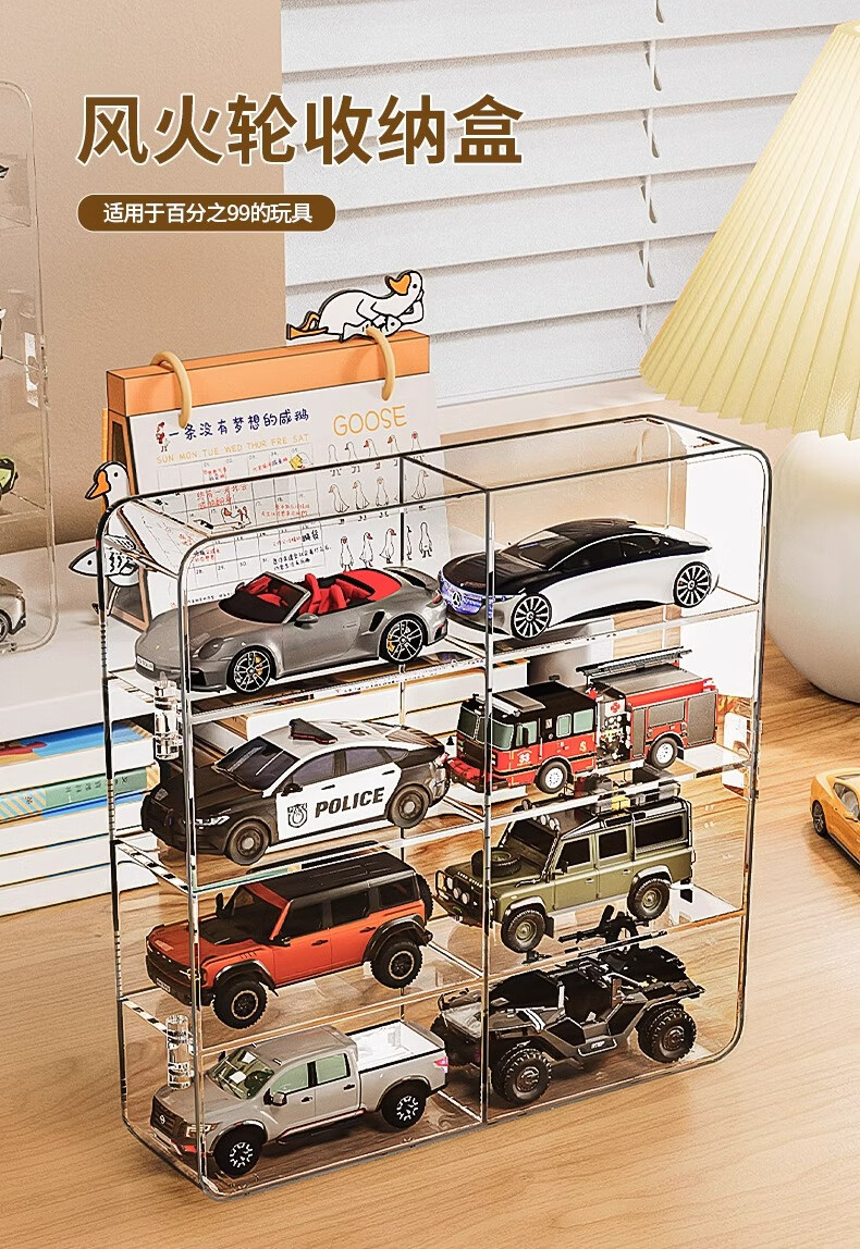 Fiber leaf Hot Wheels storage box alloy car model TOMICA1 64 children's toys Tomica transparent display stand 1 64 stackable transparent display box (8 grids)