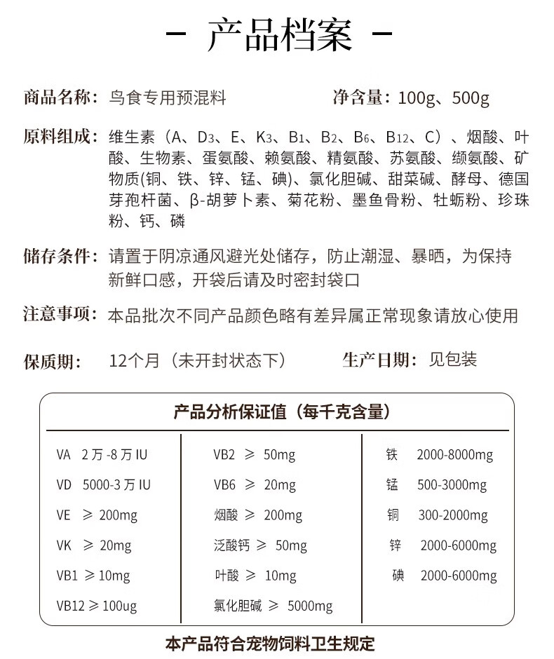 Kaiyuan Parrot Bird Food Special Premix Tiger Skin Black Phoenix Peony Parrot Bird Food Feed Special for Breeding Period Nestlings 100g Special Bird Food Premix 100g/bag
