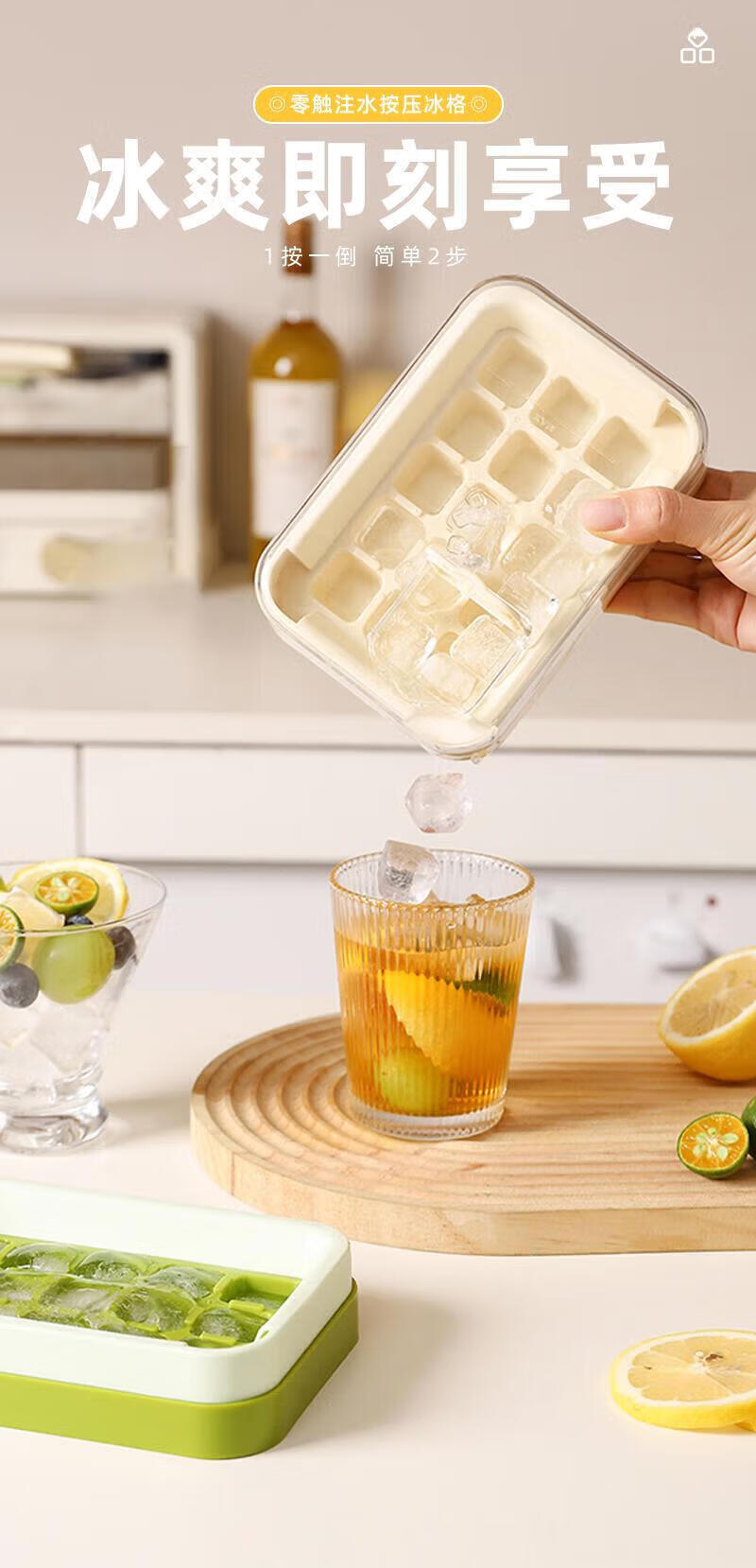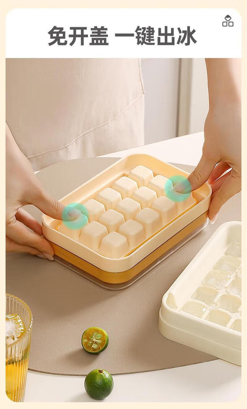 Jidaocook Zero-touch Water Injection Press Ice Tray Ice Cube Mold Home DIY Ice Maker with Cover for Easy Demolding Portable Freeze Storage Ice Box Lemon Yellow-15 Grids/Press-Easy Demold