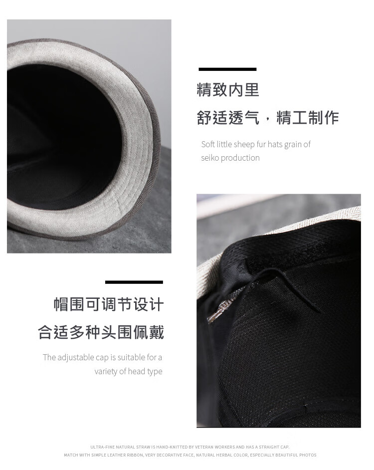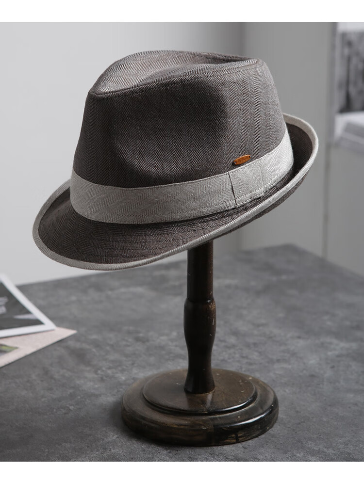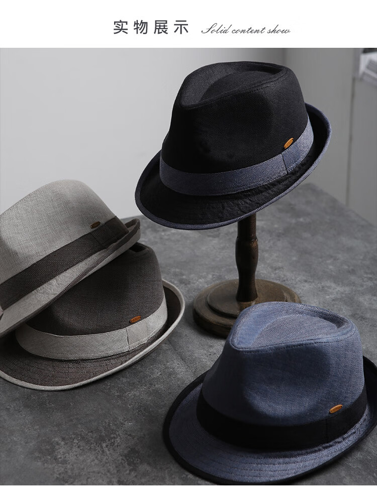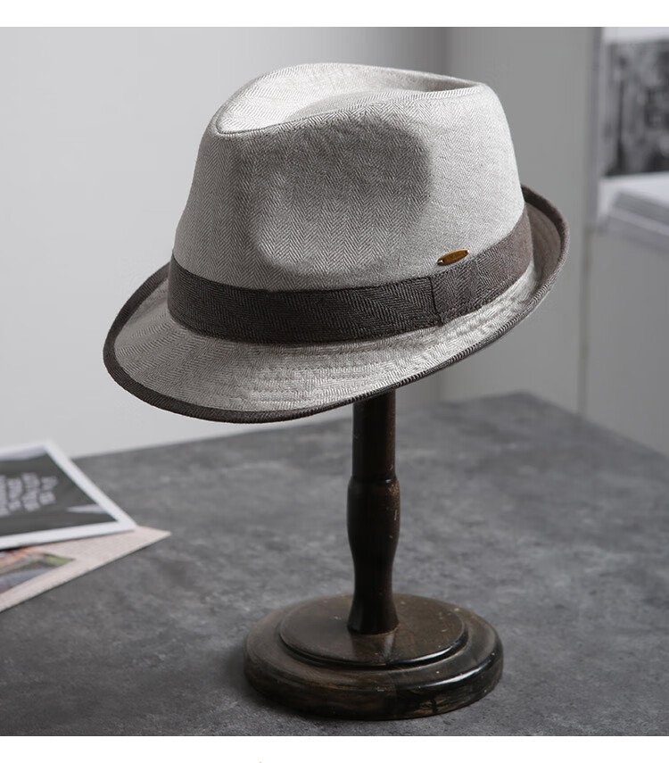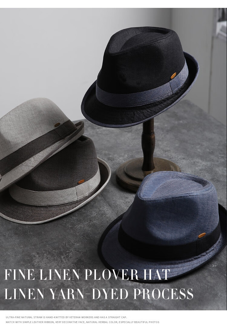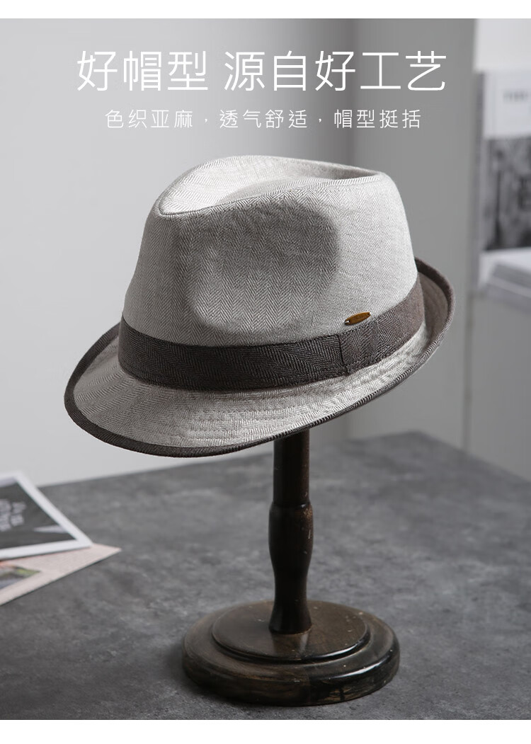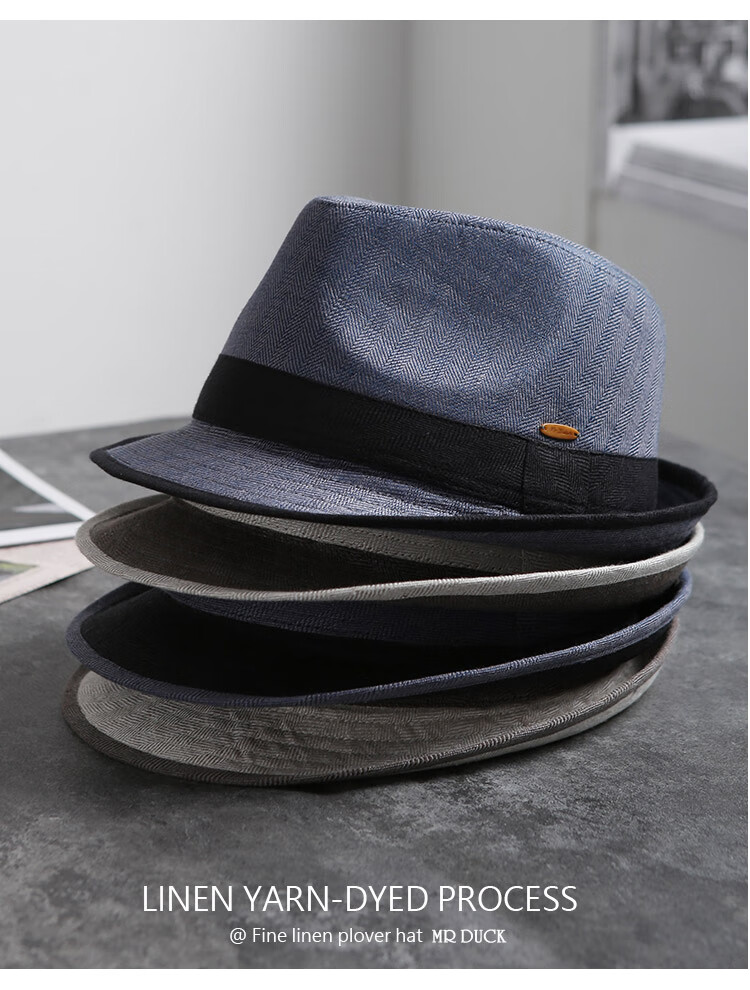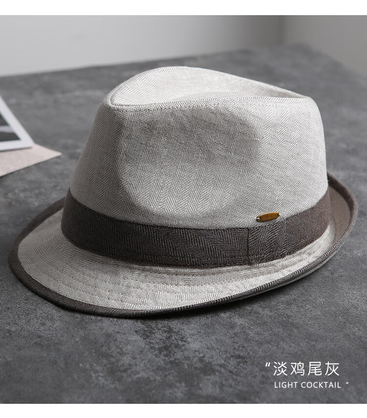 Mr DUCK new product linen straw hat summer British top hat men's and women's curled jazz hat MW226218-light cocktail gray (top hat) XL size (over 61cm, only for extra large head circumference)