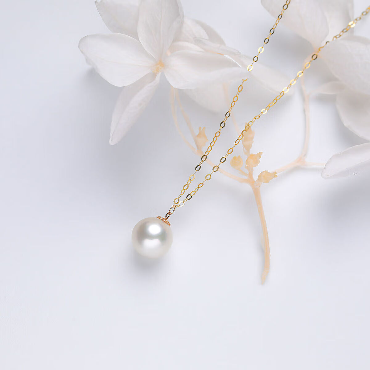Lishi Jewelry 18K natural fresh water akoya perfect round bright light living mouth pendant lift diy single pearl accessories closed ring gold color 4.5-5mm