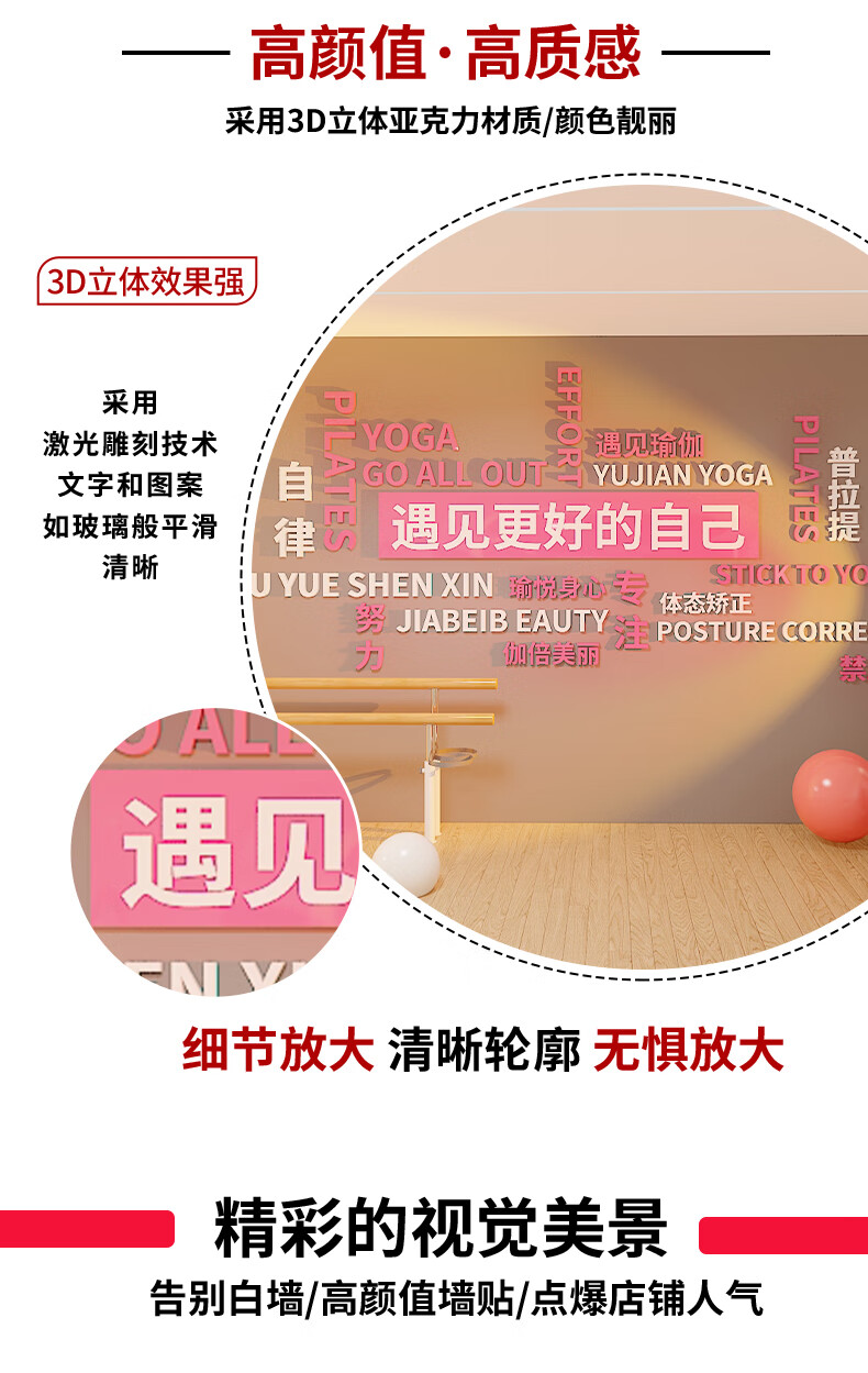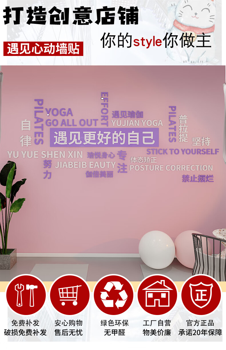 Maoyu Yoga Studio Wall Decoration Painting Image Room Arrangement Pilates Stickers Hanging Cultural Posters Background Studio P7307 Meet Yoga-Pink + White 200cm*86cm Large Size