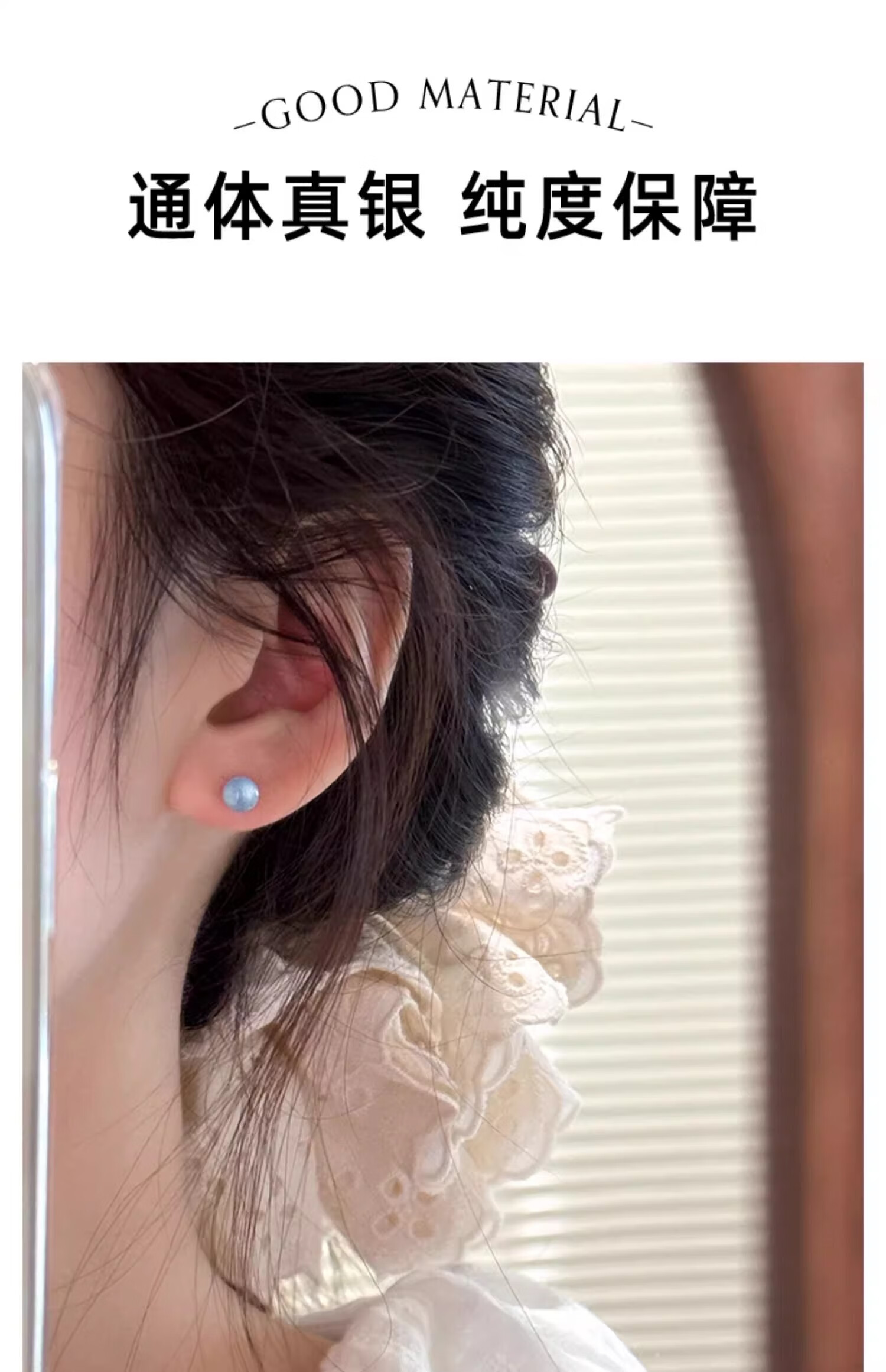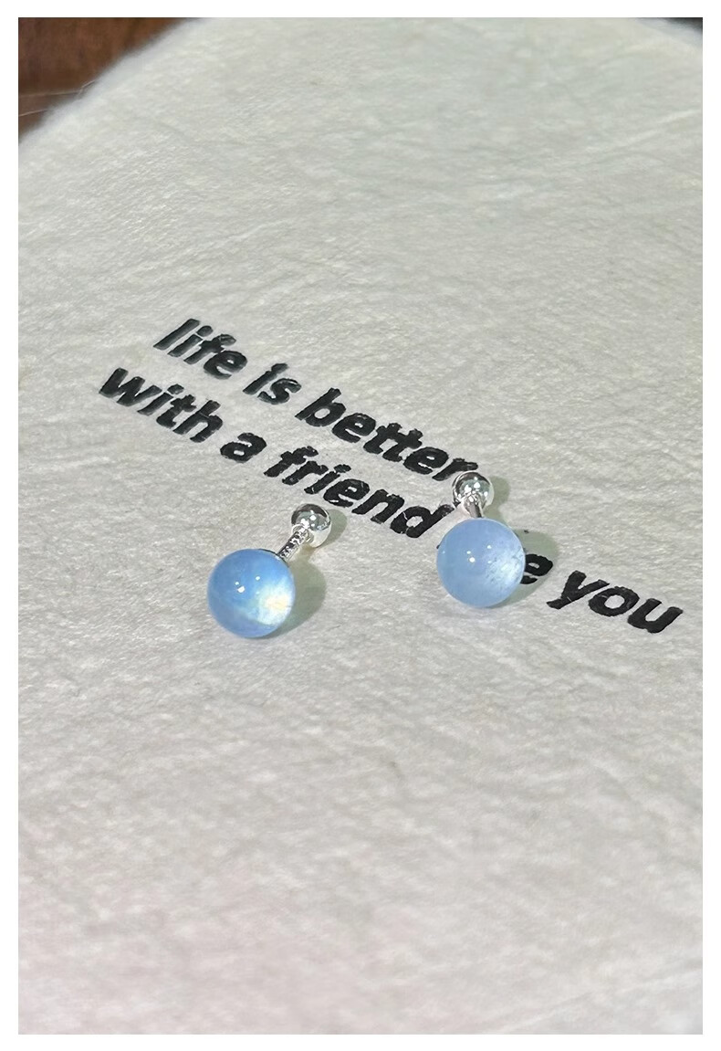 BJYLS999 pure silver blue earrings for girls, suitable for summer earrings 2025 new high-end temperament pure silver earrings Moonlight Firefly 999 pure silver earrings (pair)