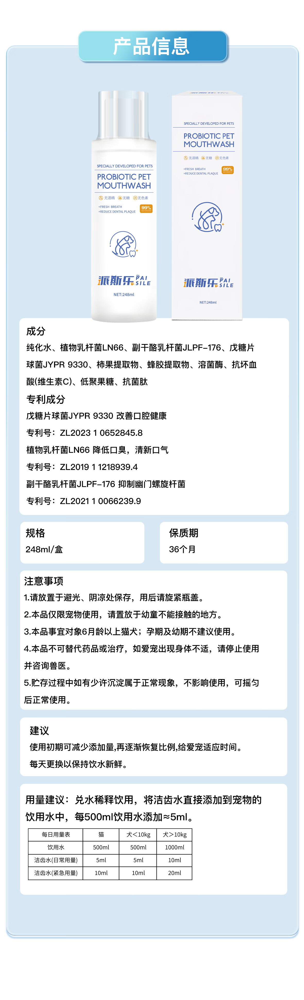 Paisile Pet Probiotic Teeth Cleanser for Cats and Dogs Fresh Breath and Bad Breath Mouthwash for Pet Cats and Dogs Send 3 bottles of Paisile Probiotic Teeth Cleanser