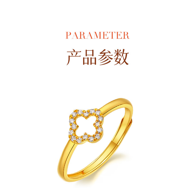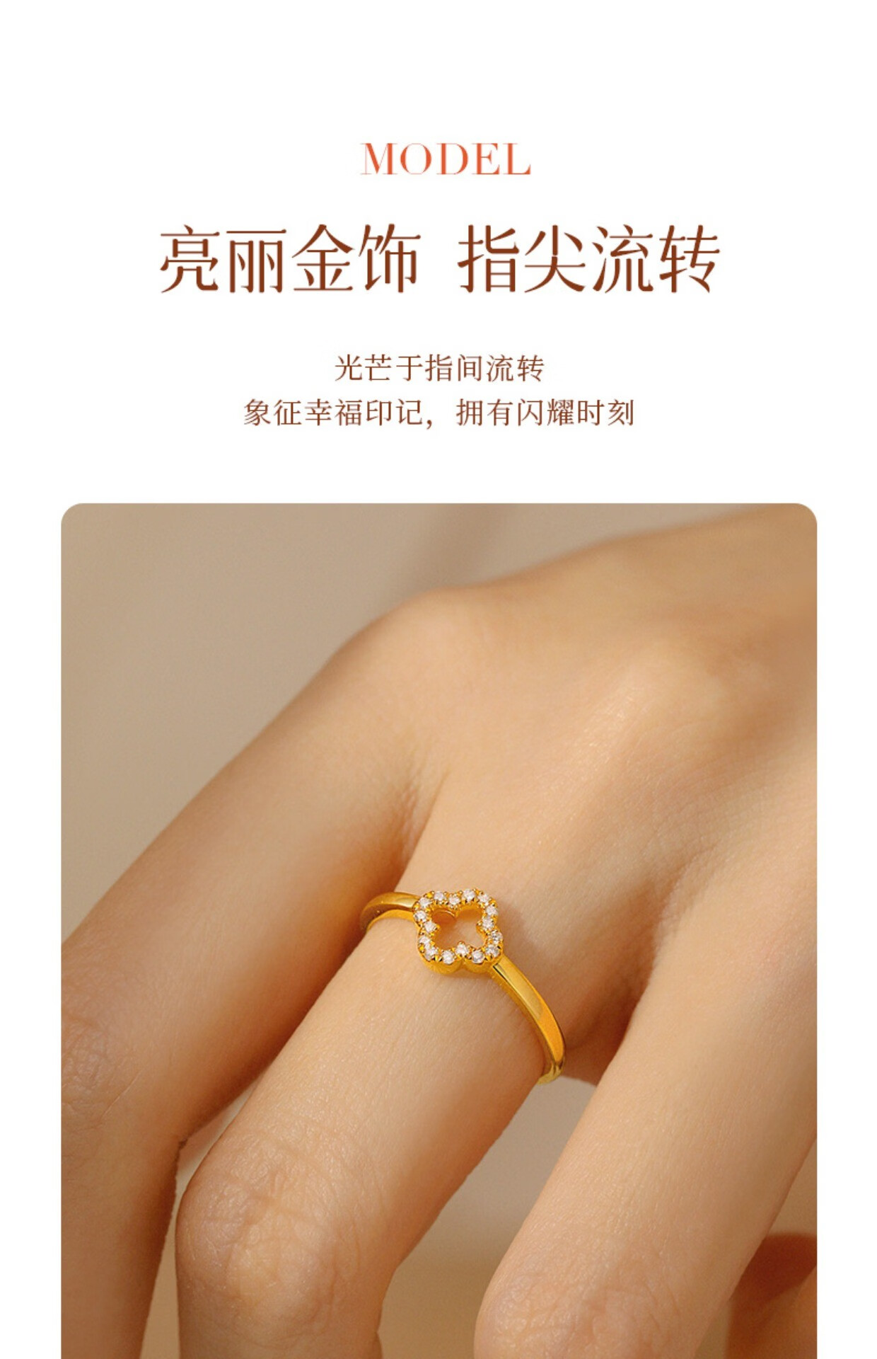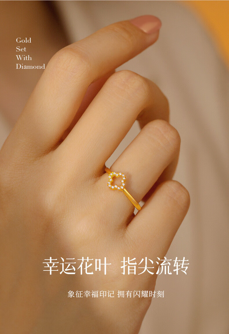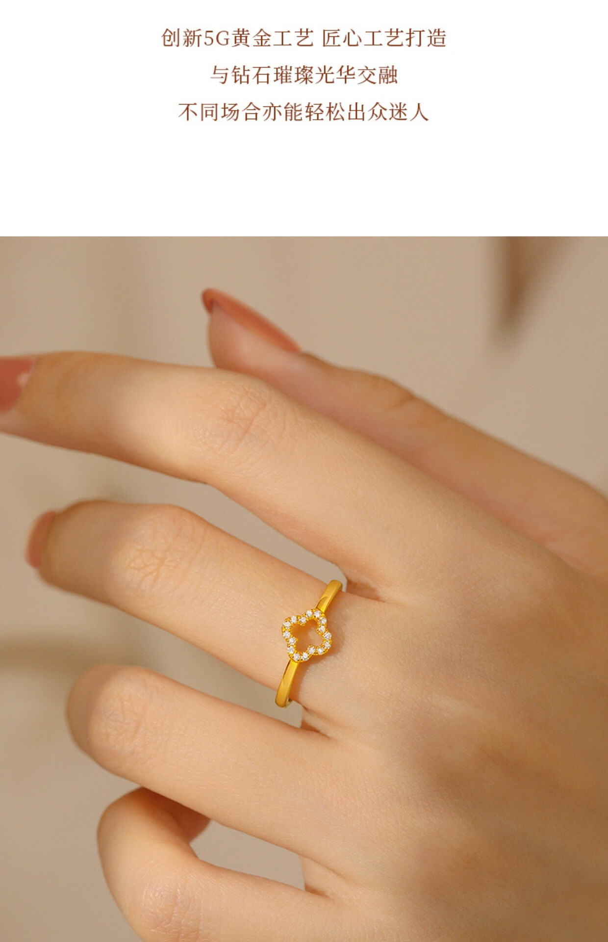 Libiao four-leaf clover women's ring 5G gold diamond ring solid gold 999 wedding ring engagement diamond ring live ring in stock, a total of 9 points of diamonds - gold weight about 1.68g