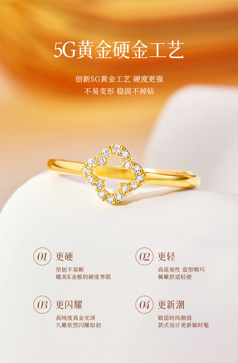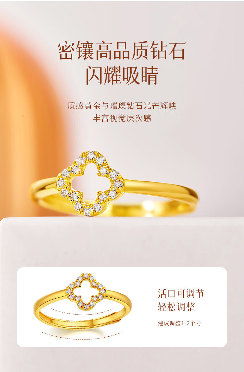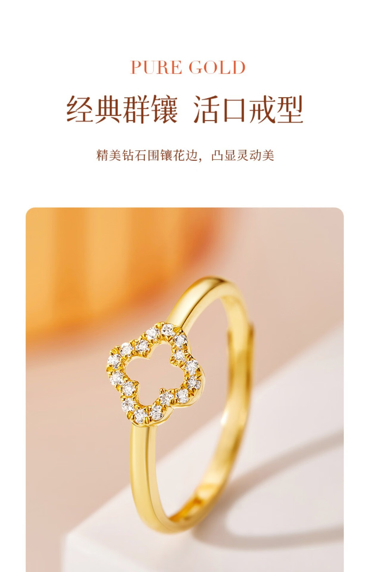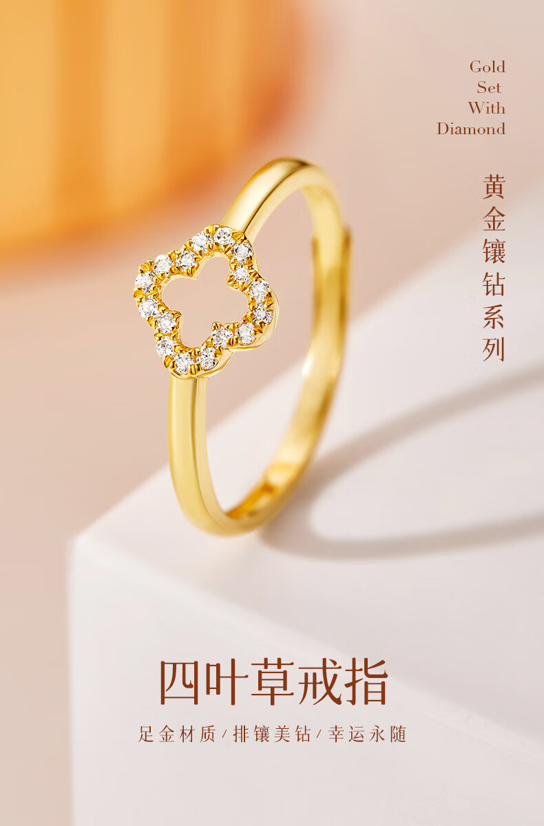 Libiao four-leaf clover women's ring 5G gold diamond ring solid gold 999 wedding ring engagement diamond ring live ring in stock, a total of 9 points of diamonds - gold weight about 1.68g