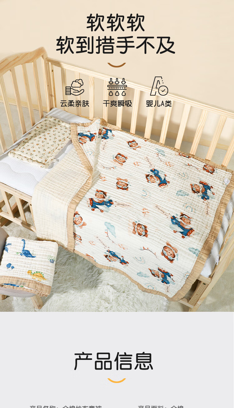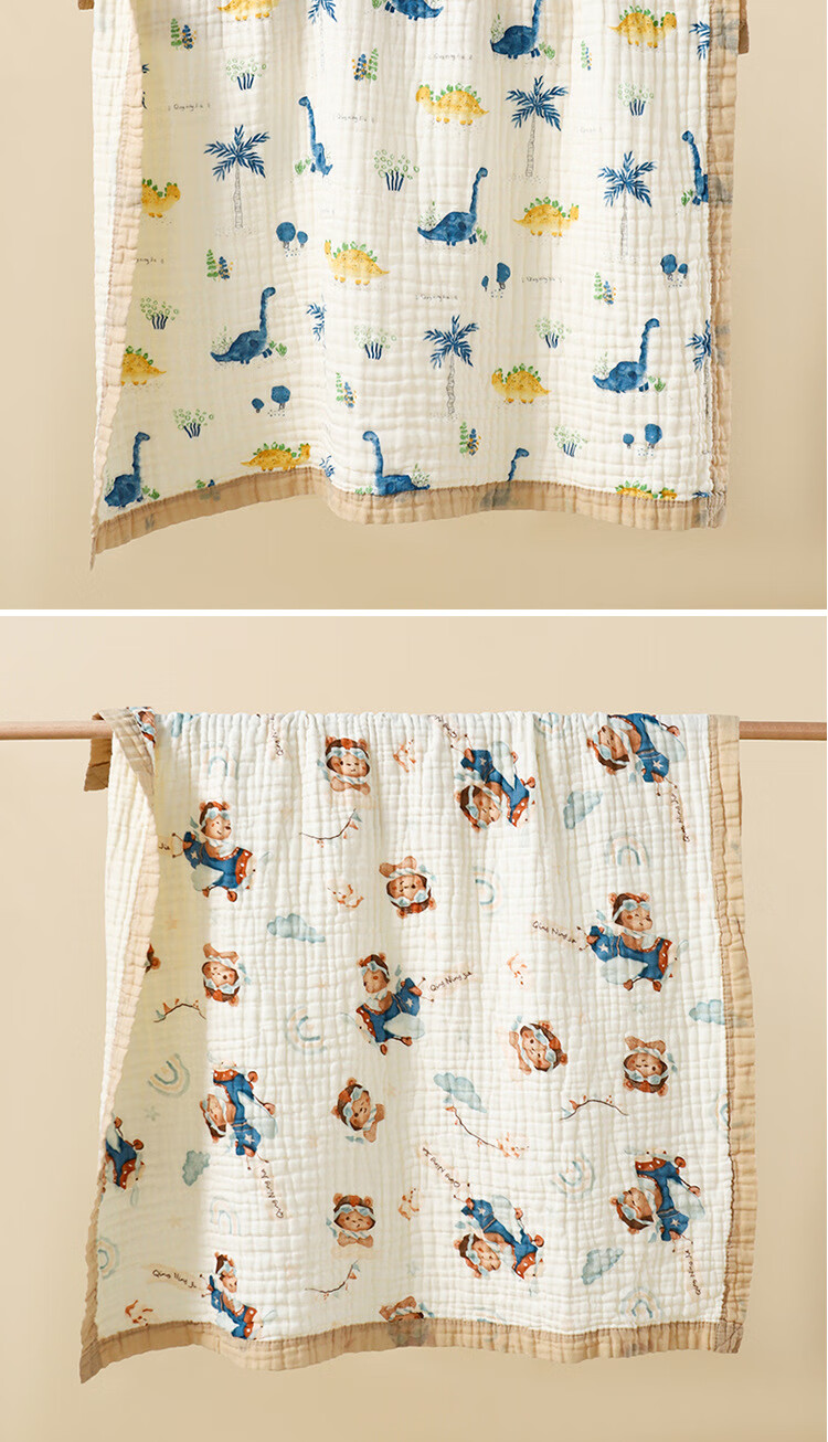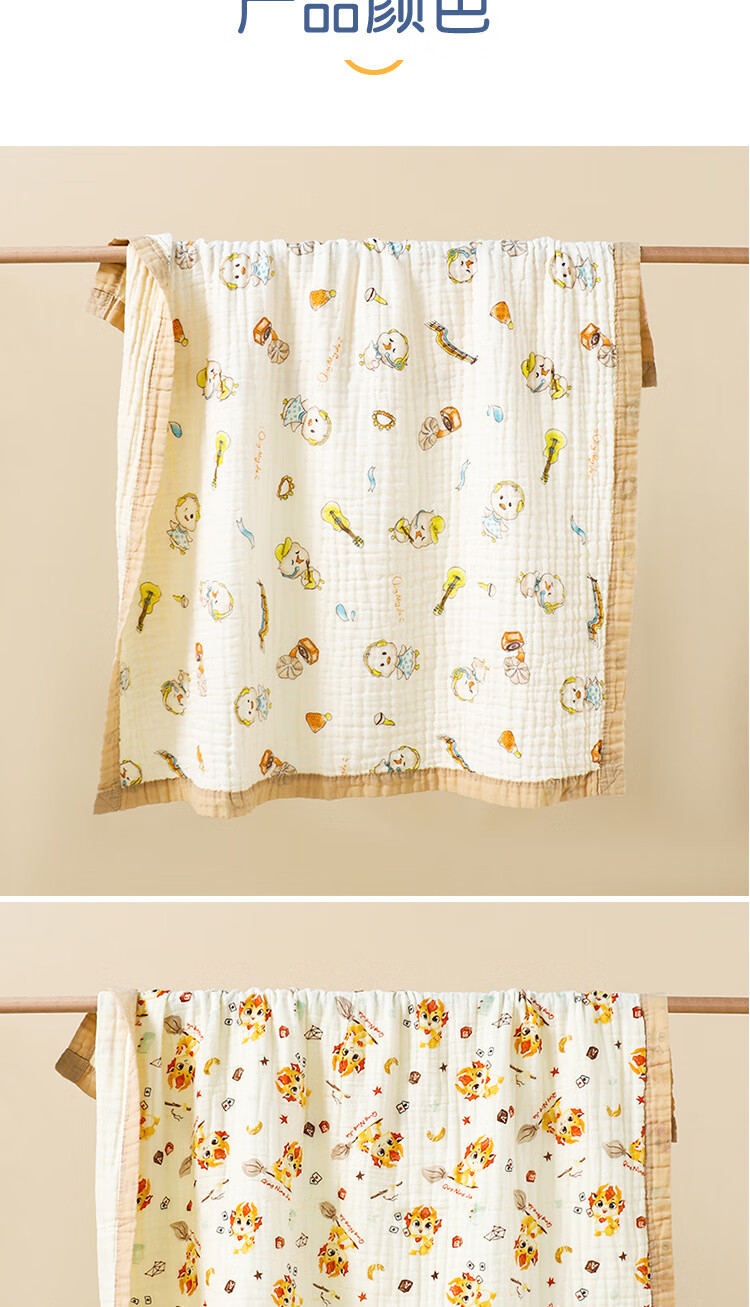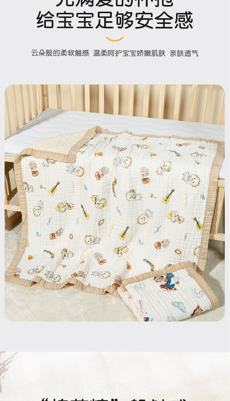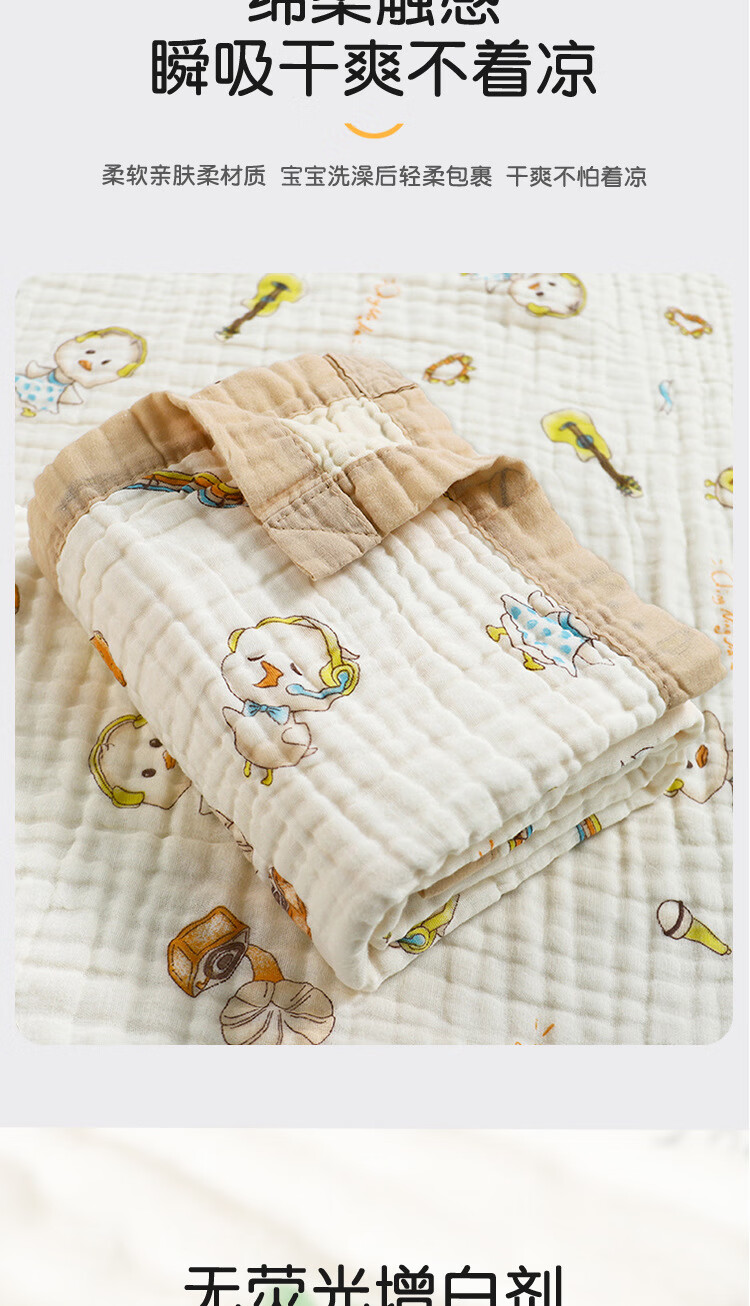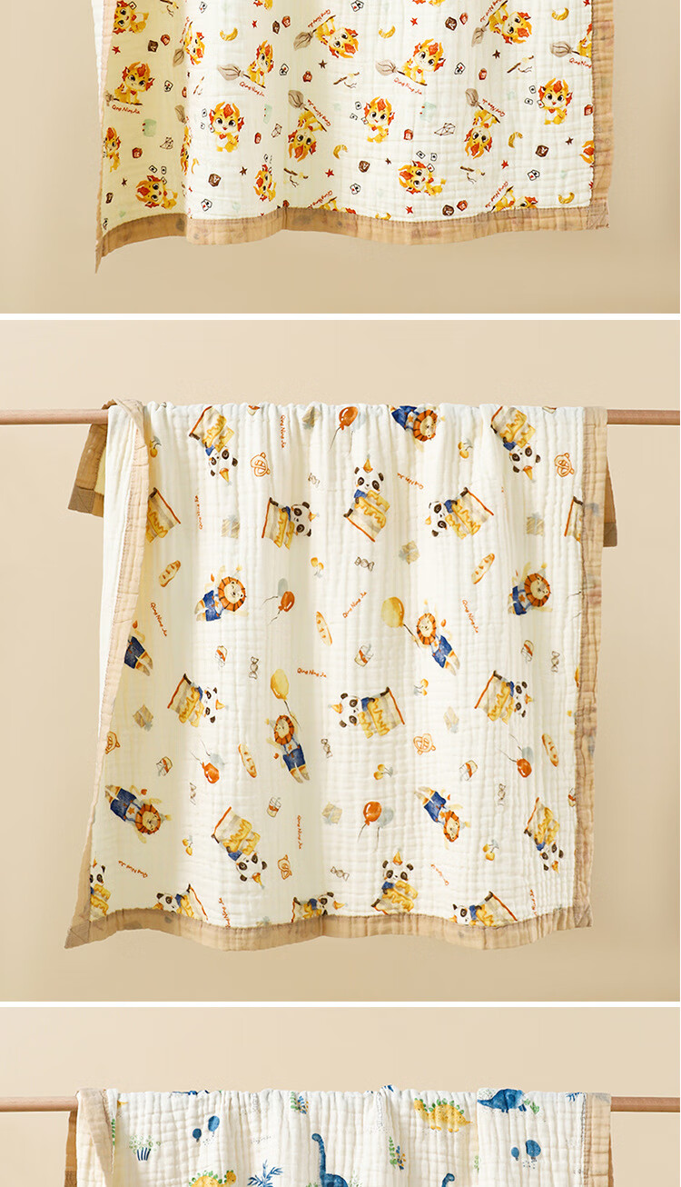 Newborn baby bath towel six layers pure cotton gauze bath towel type A soft children's blanket absorbent newborn baby blanket wide edge model - hot air balloon six layers 110*110cm