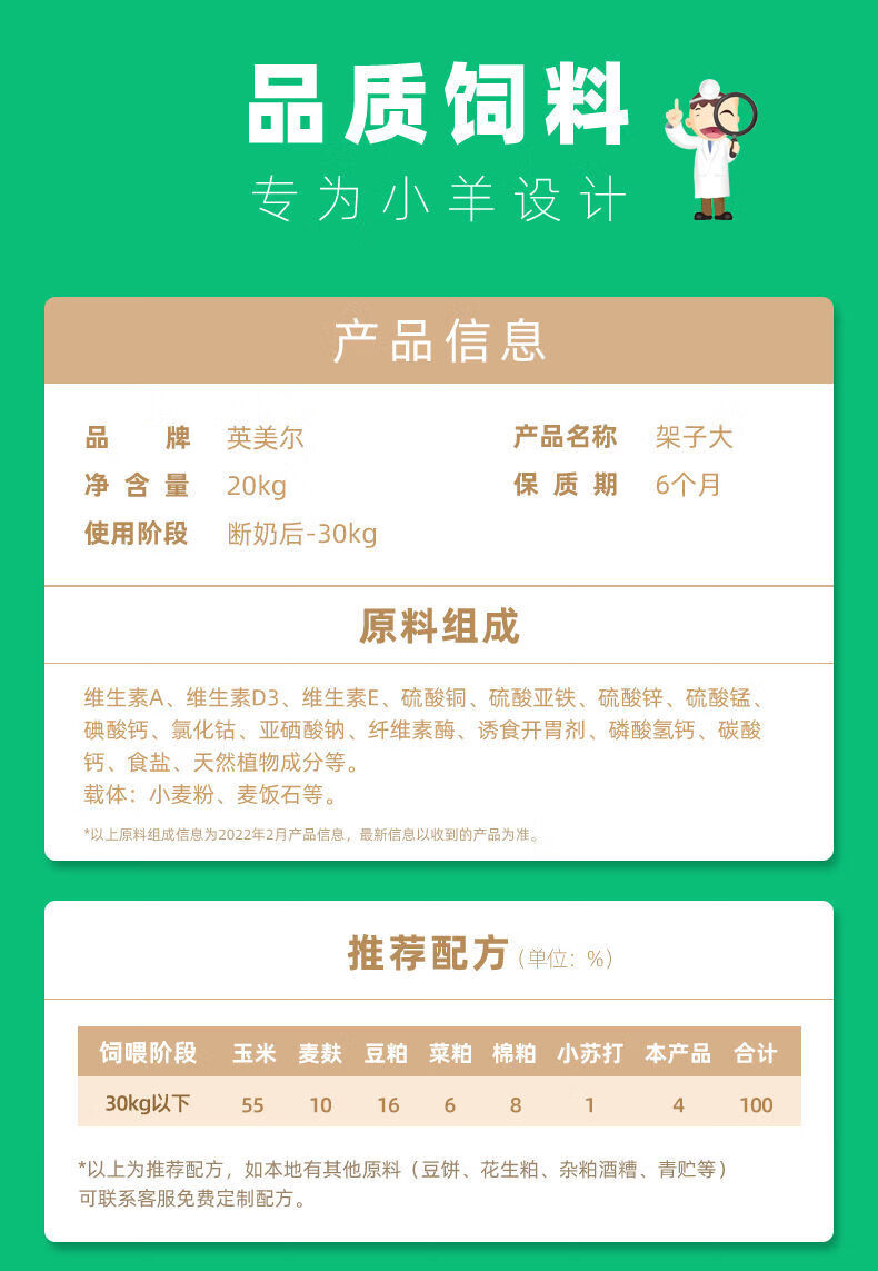 Yingmeier lamb feed rack lamb premix Yingmeier rack large sheep feed lamb feed promotes growth and prevents disease, the rack is 20kg (4% in the early stage of fattening)