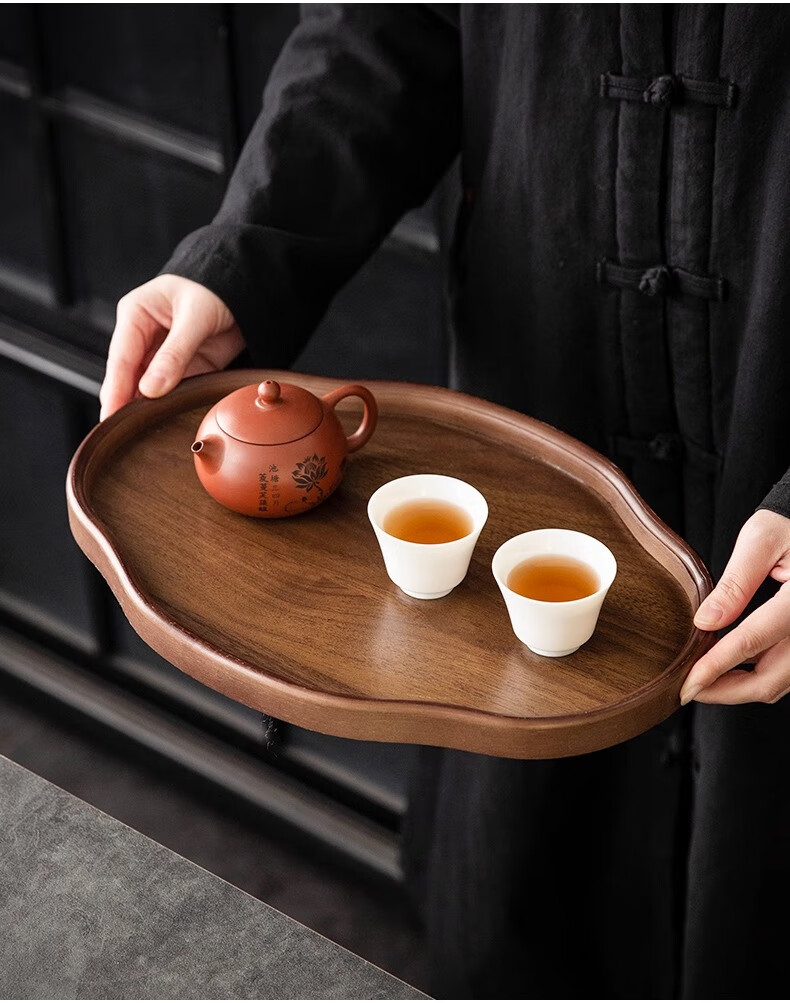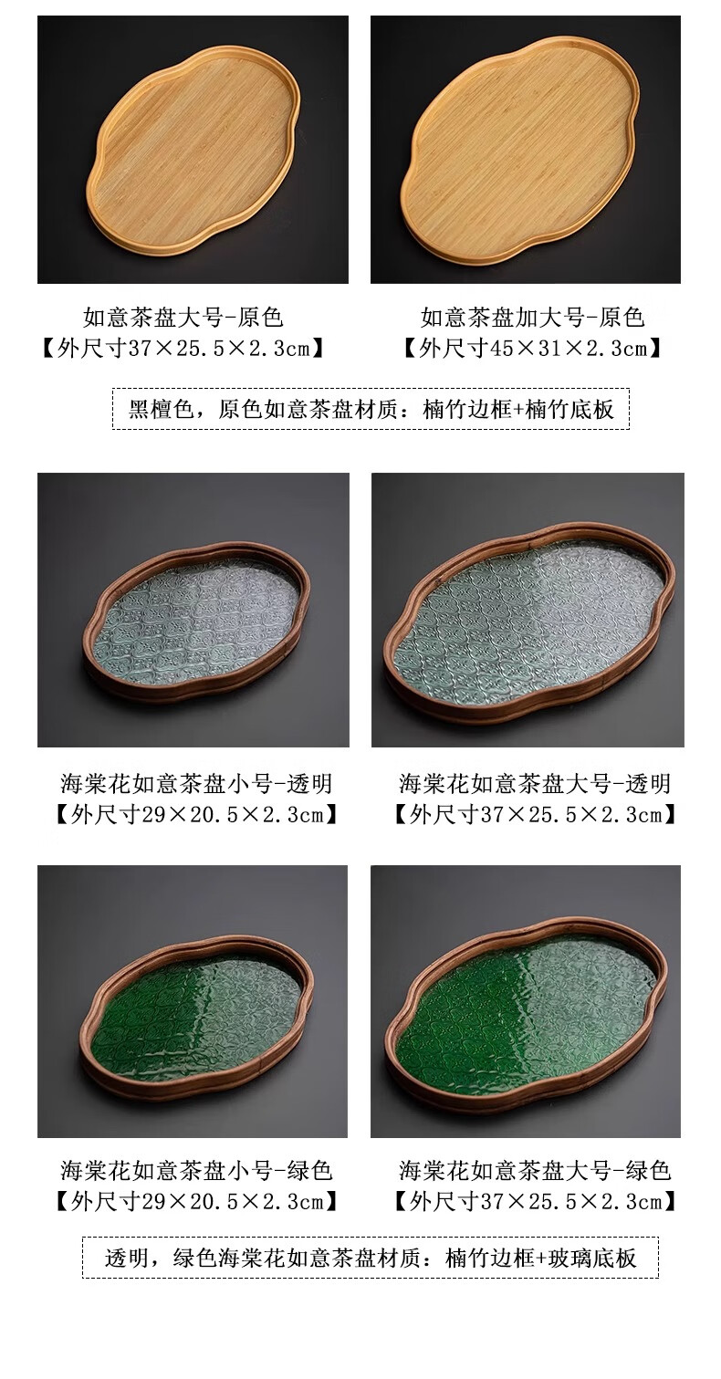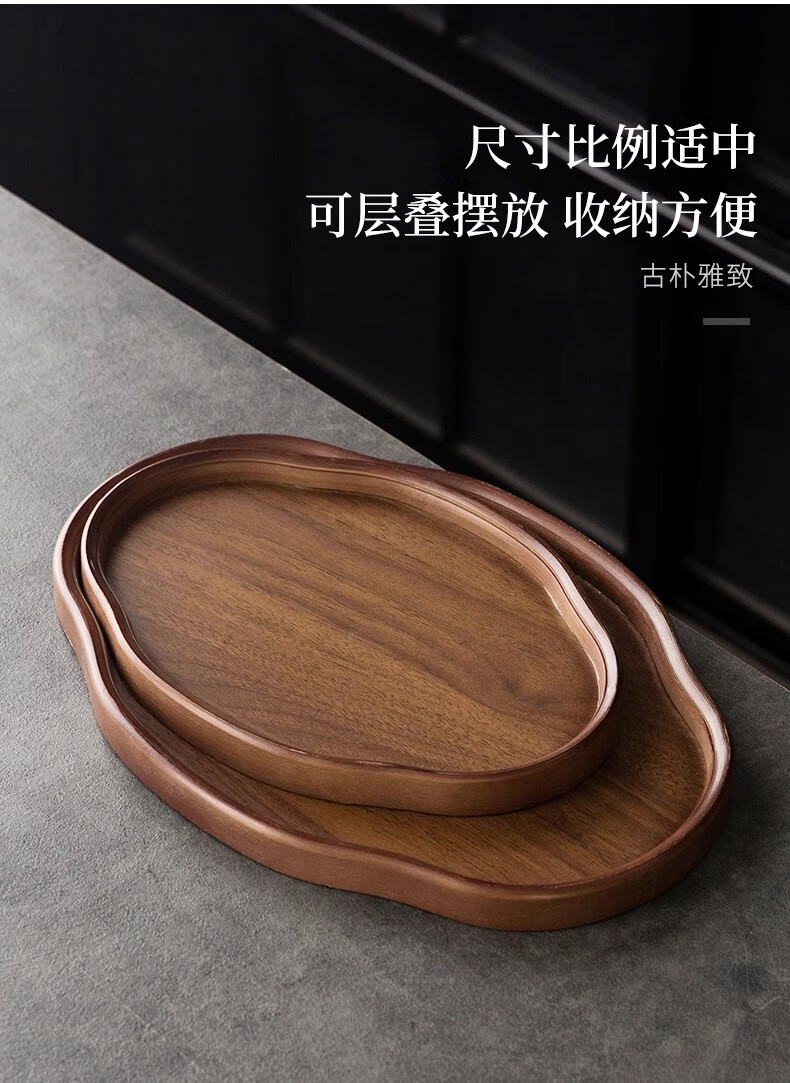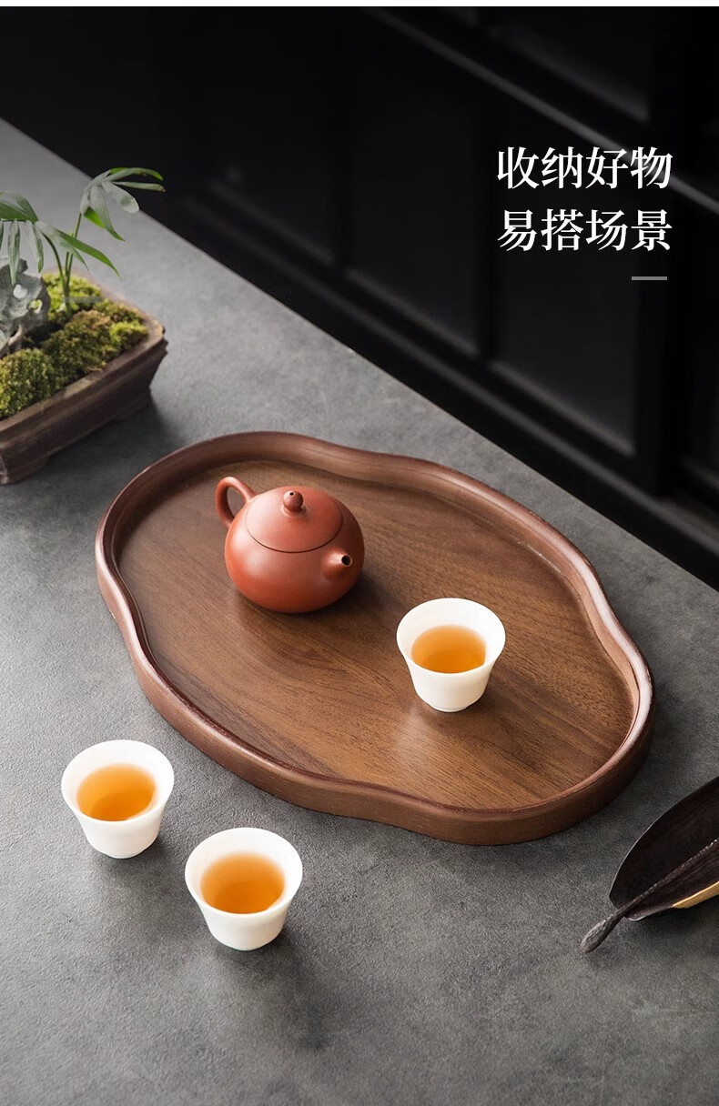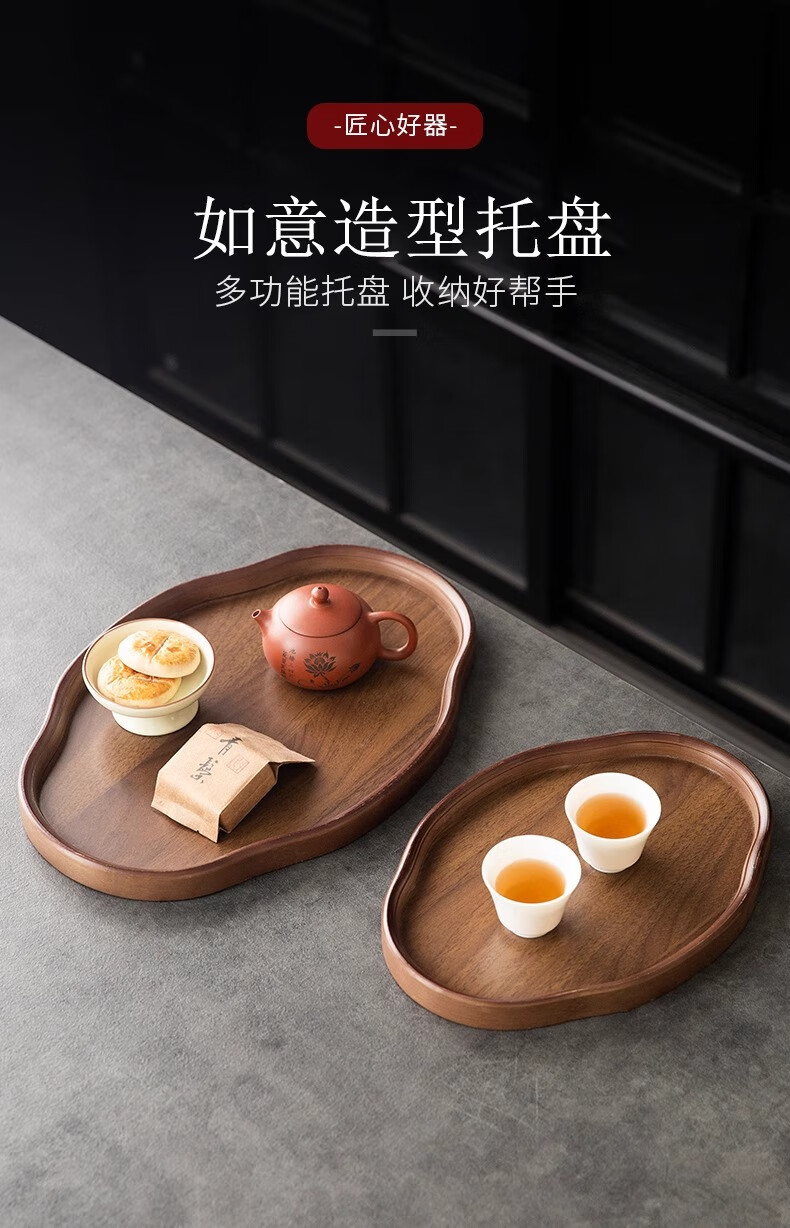 Chinese style bamboo wooden snacks and dried fruits fruit storage tray high-looking cake snack tray household tea cup storage retro color 37*26*2.3 Ruyi large size