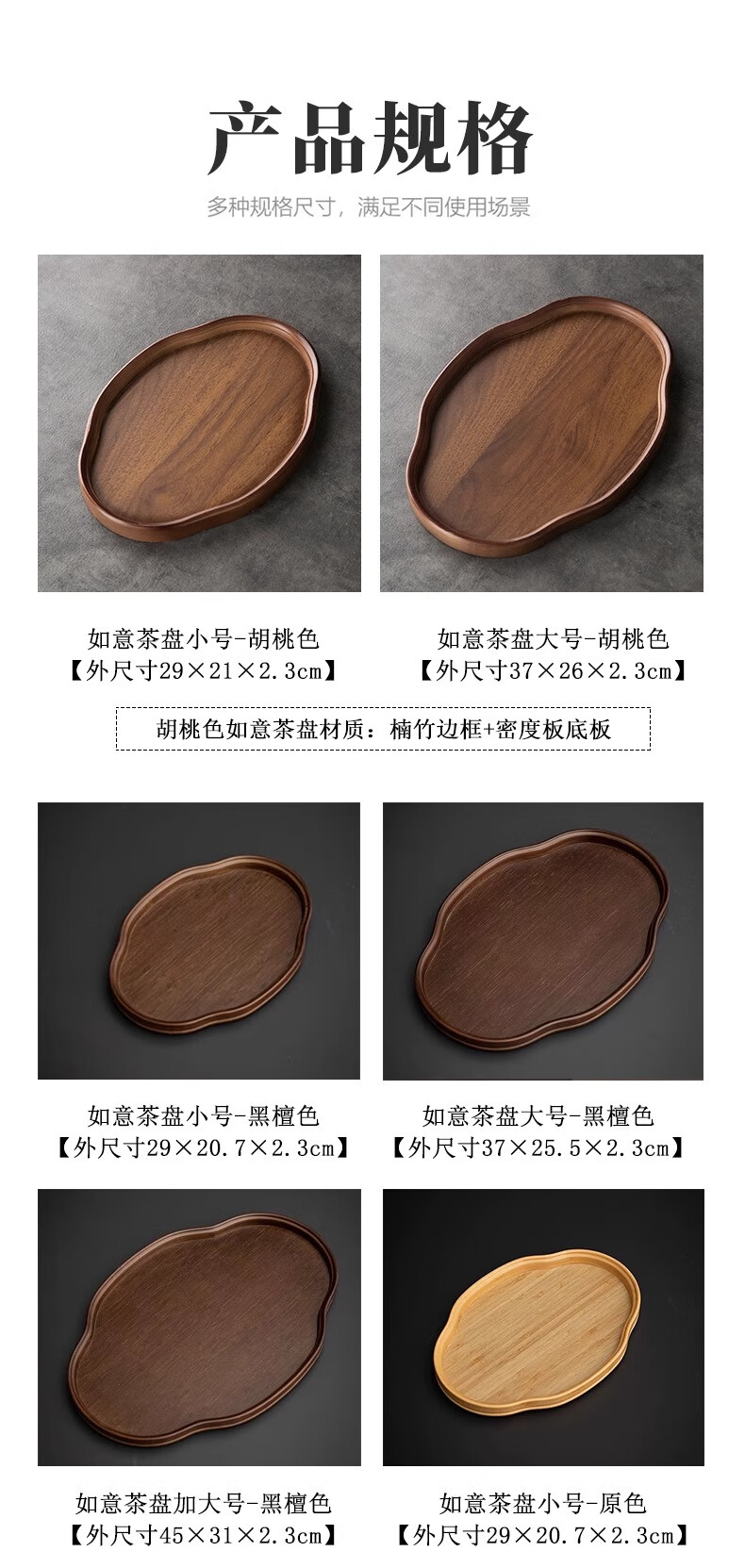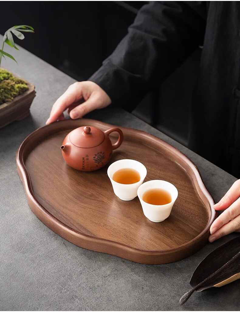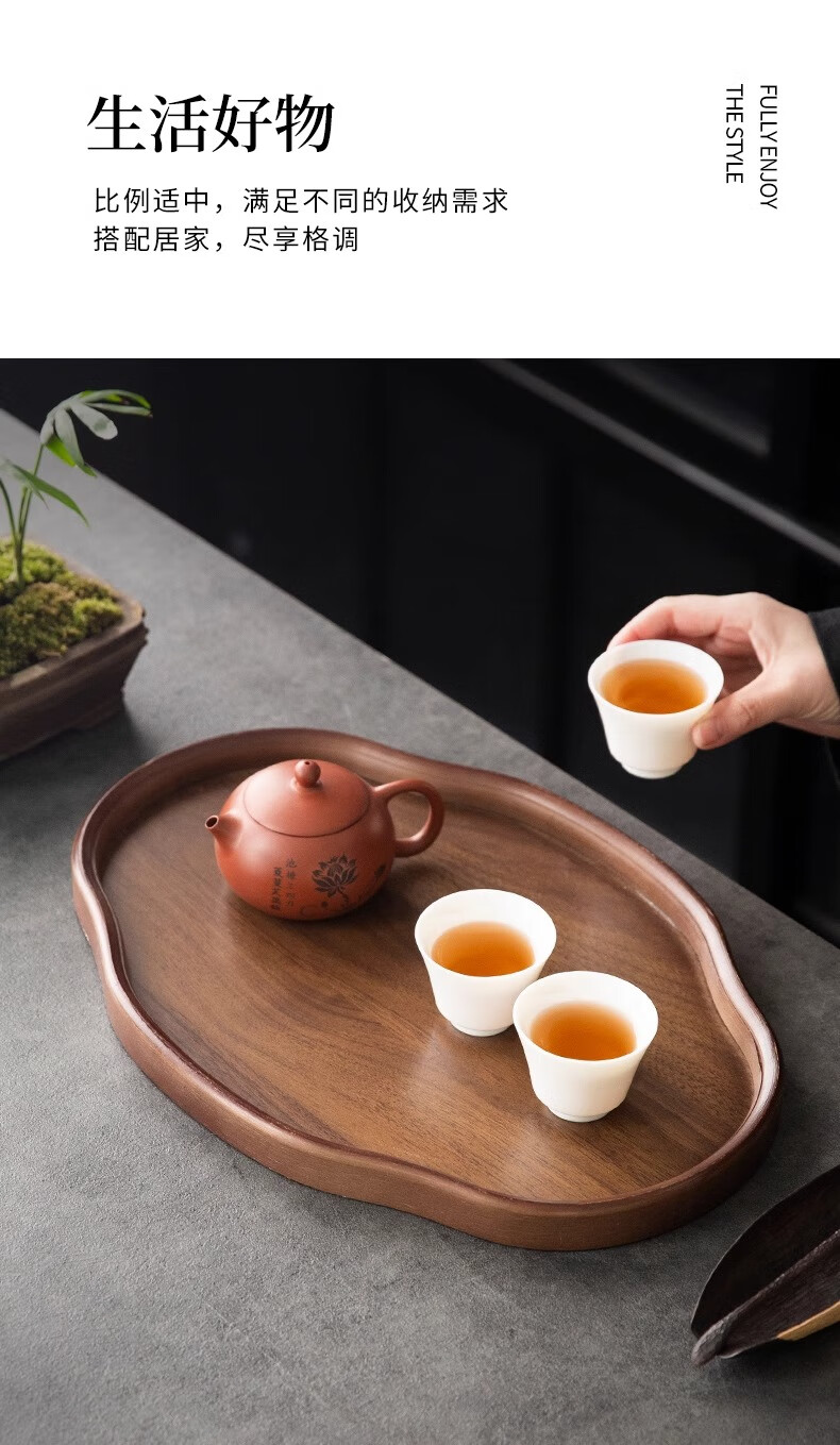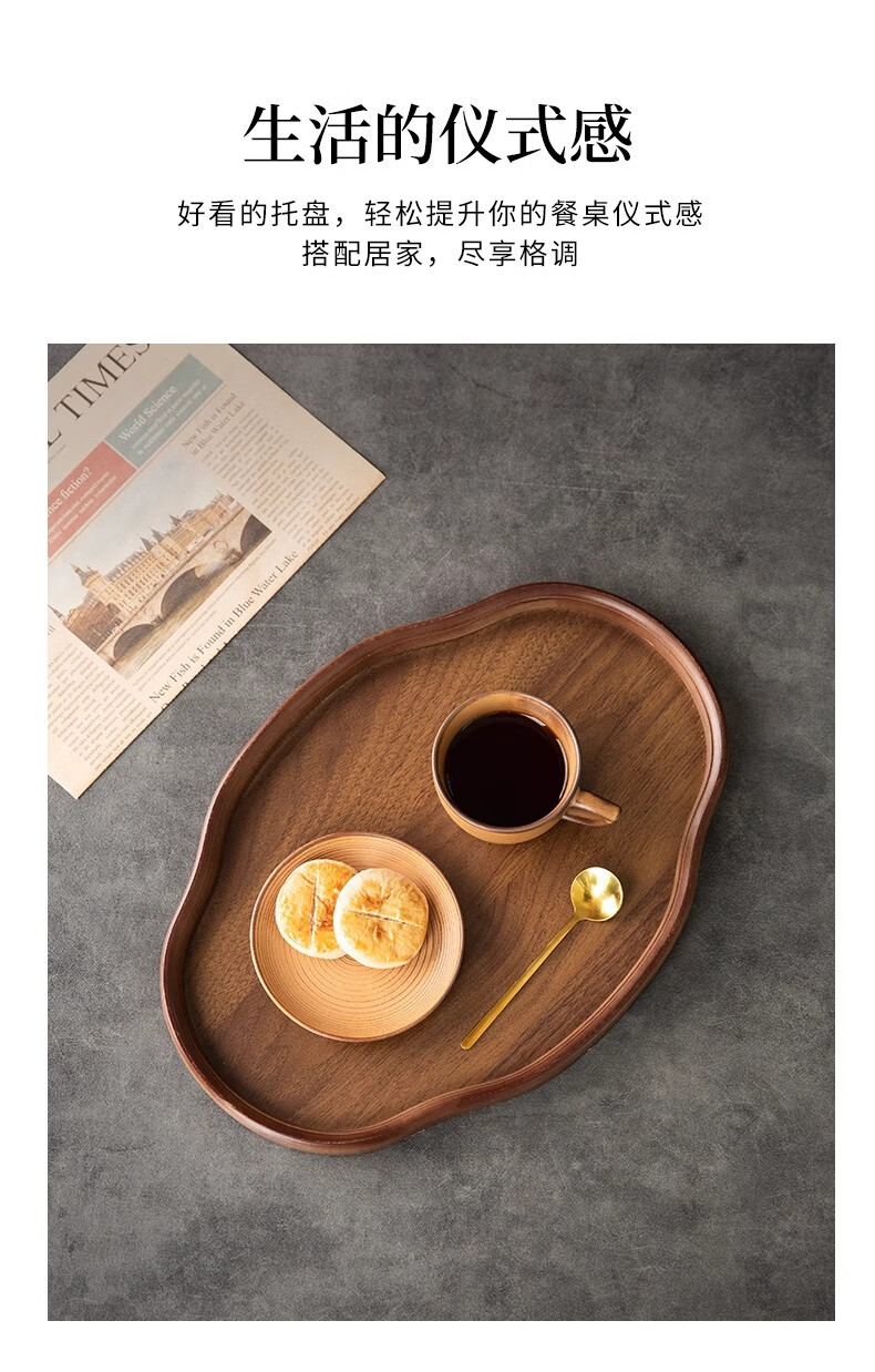 Chinese style bamboo wooden snacks and dried fruits fruit storage tray high-looking cake snack tray household tea cup storage retro color 37*26*2.3 Ruyi large size