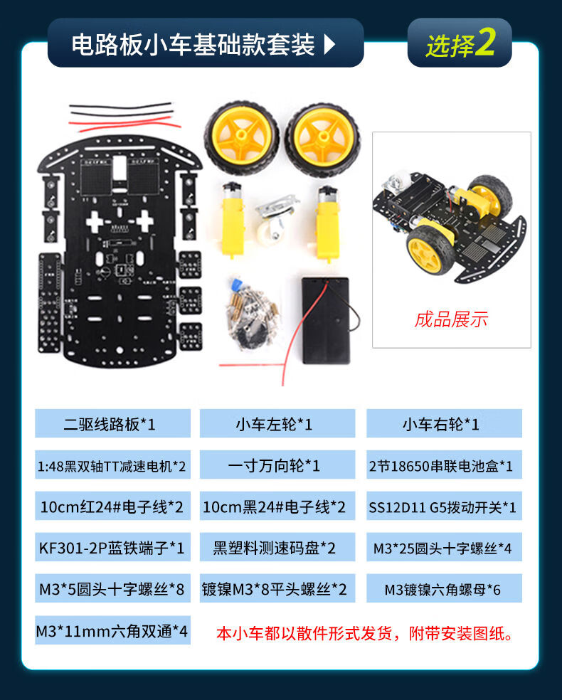 Smart car chassis 51 microcontroller diy kit bluetooth tracking and obstacle avoidance robot two/four-wheel drive car 2 tires circuit board car bluetooth set