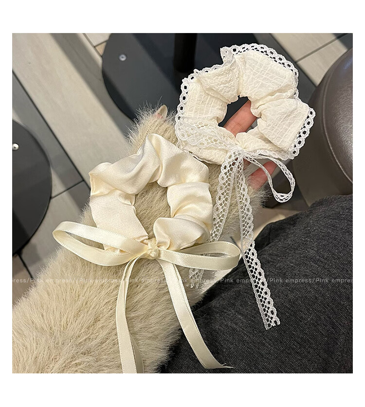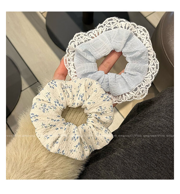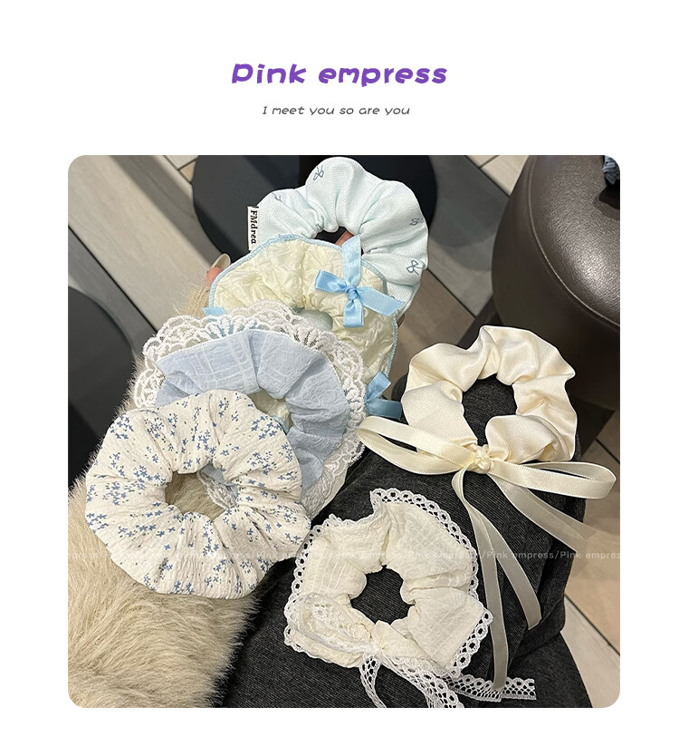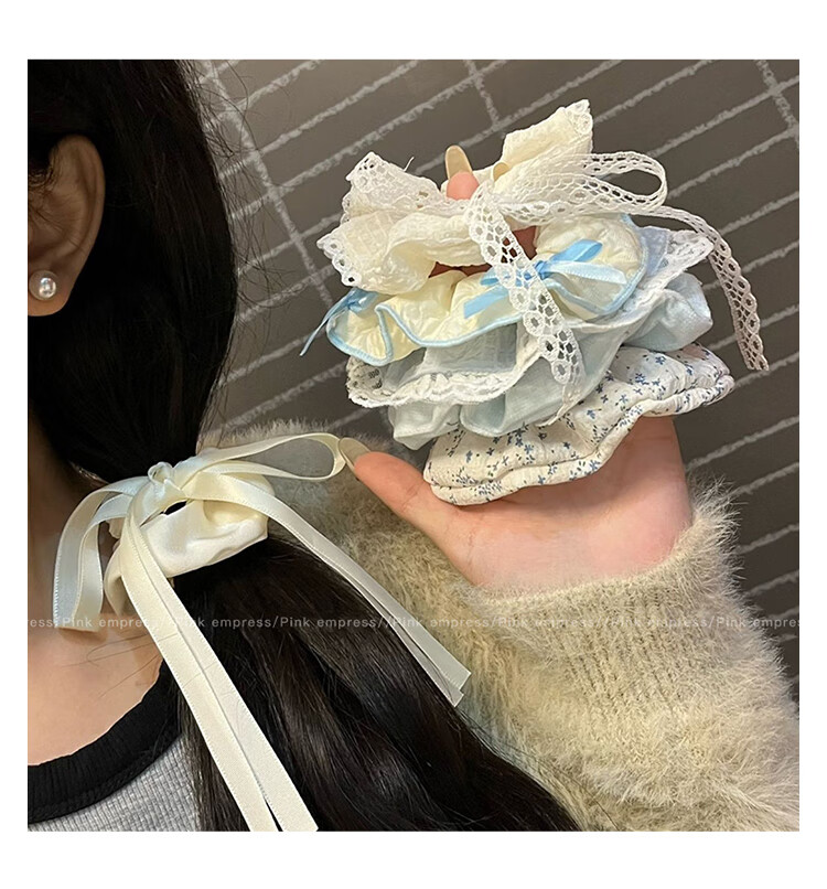 Sweet bow floral large intestine hair tie for women with lace versatile ponytail hair style girl headband hair rope hair accessories 1# sea salt blue hair tie six-piece set