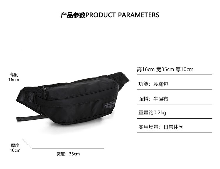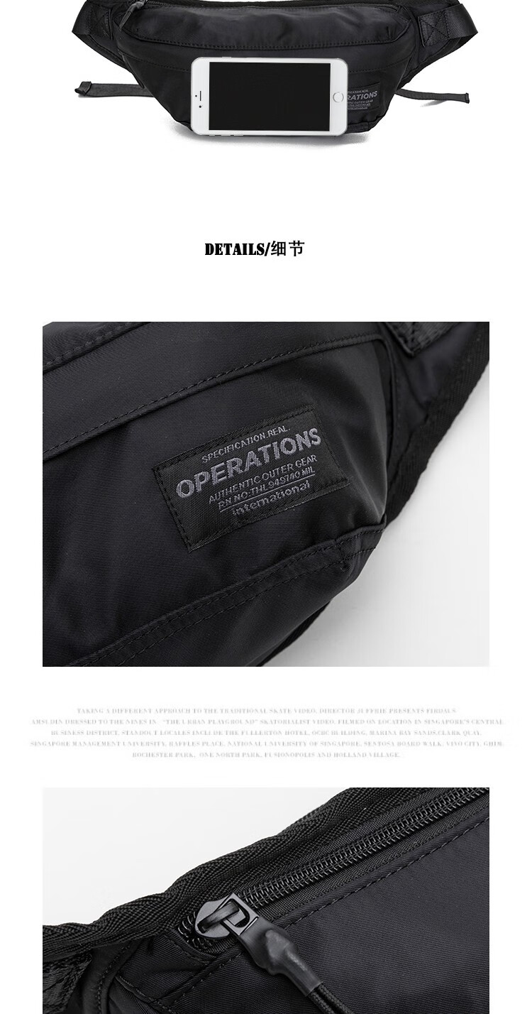 GPHF Japanese men's multifunctional waist bag Oxford cloth waterproof casual sports chest bag fashionable brand cycling bag crossbody bag black
