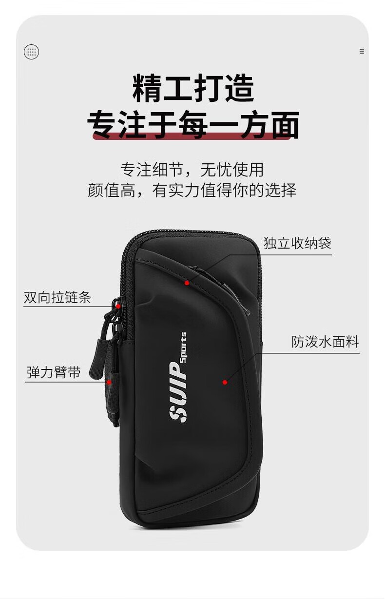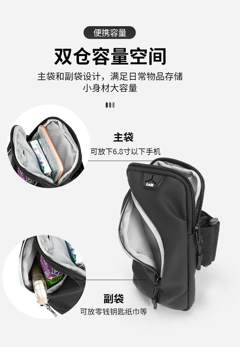 GPHF Japanese 2025 new running mobile phone arm bag for men and women sports fitness arm sleeve wrist bag arm waterproof storage bag classic black