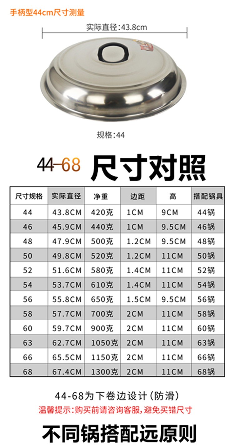 Heightened and thickened stainless steel pot lids Large pot lids Iron pot lids Heightened lids Wok lids Cylinder lids Steamer 50cm Heightened version
