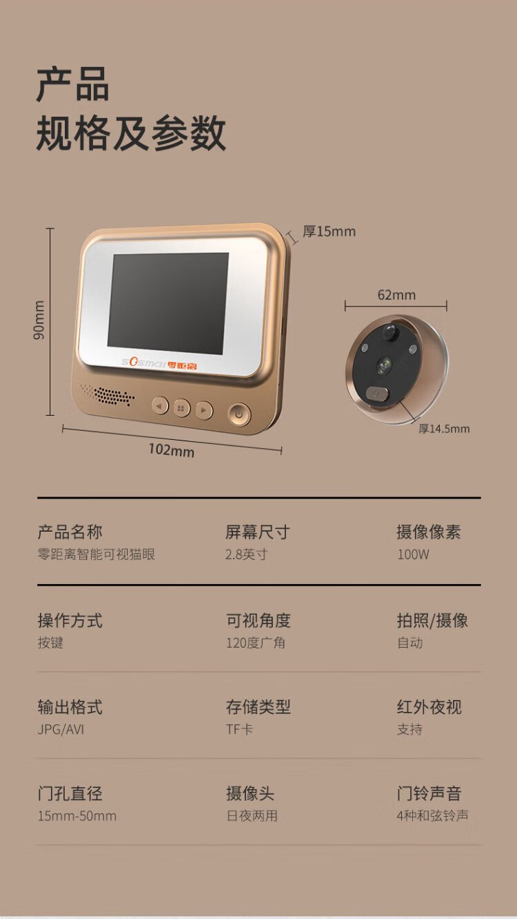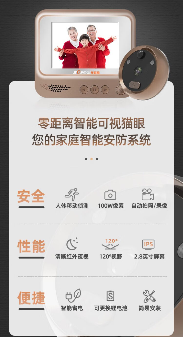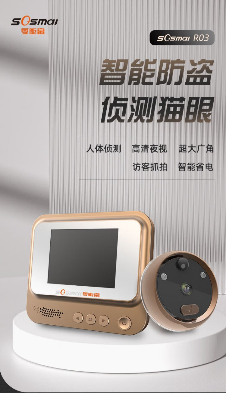 Zero distance (sosmall) smart electronic cat eye, visual home doorbell, electronic cat eye doorbell, anti-theft door camera monitoring, door mirror R01 standard model, doorbell recording