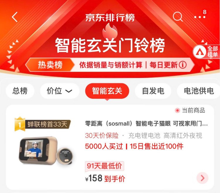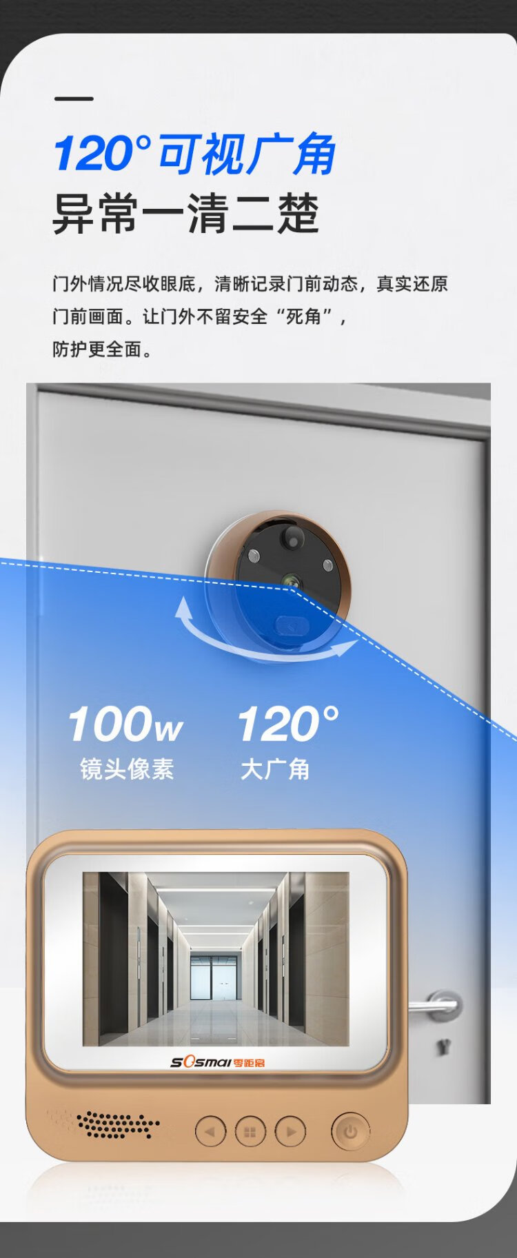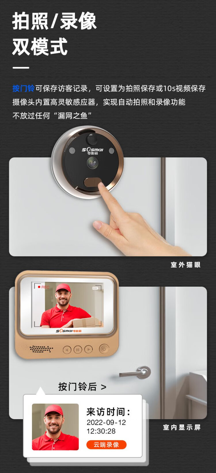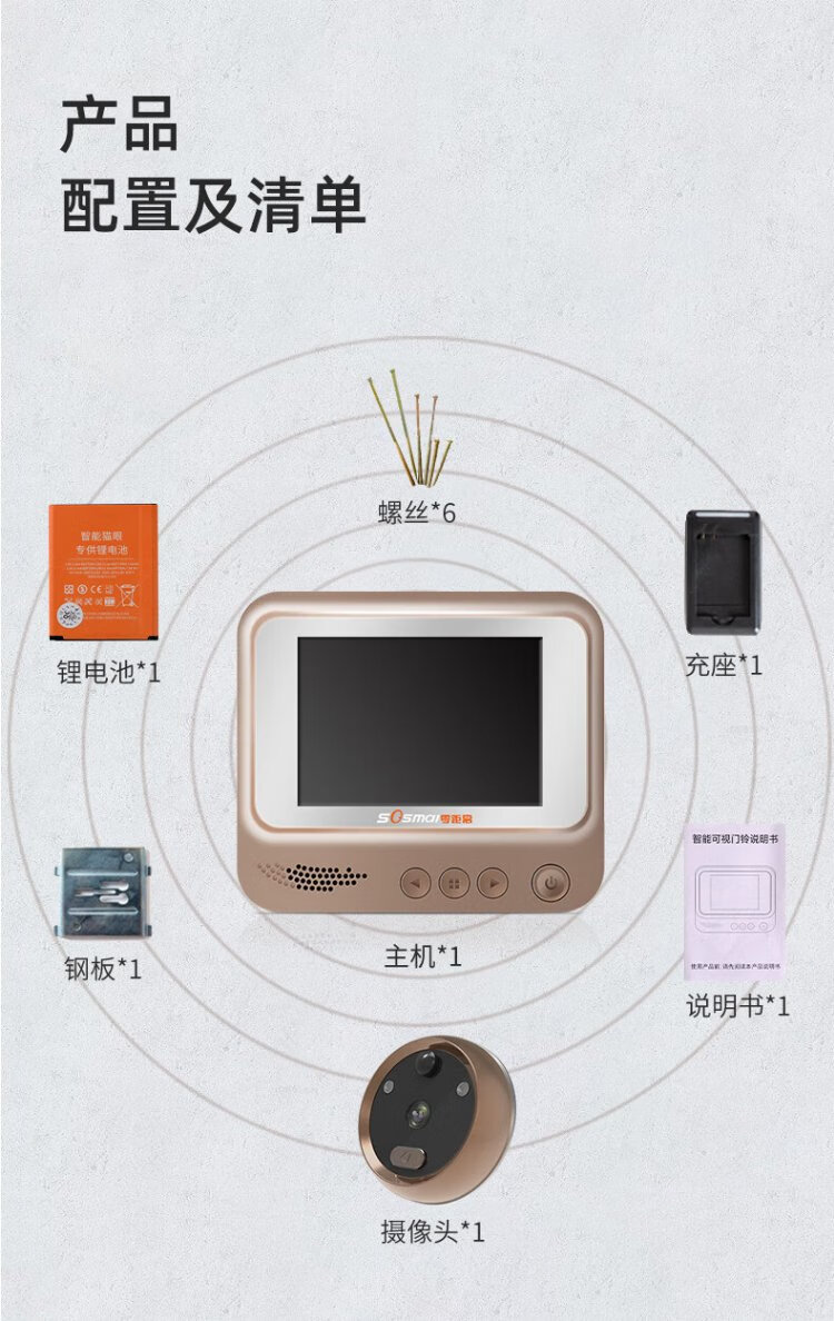 Zero distance (sosmall) smart electronic cat eye, visual home doorbell, electronic cat eye doorbell, anti-theft door camera monitoring, door mirror R01 standard model, doorbell recording