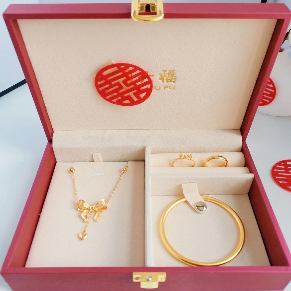 DRJEFUN Wedding Three Gold Jewelry Set Gift Box Wedding Fake Gold Necklace Engagement Fake Hardware Jewelry Simulation Table Sanshenghua Hardware Set + Gift Box Single Layer (for Gifts)