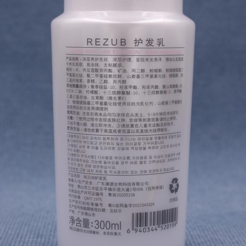 Hualeji Guangdong canned Korean REZUB hair conditioner, Southland elastic nourishing conditioner, elastin 300ml dual-use REZUB hair conditioner can be used as elastin in white