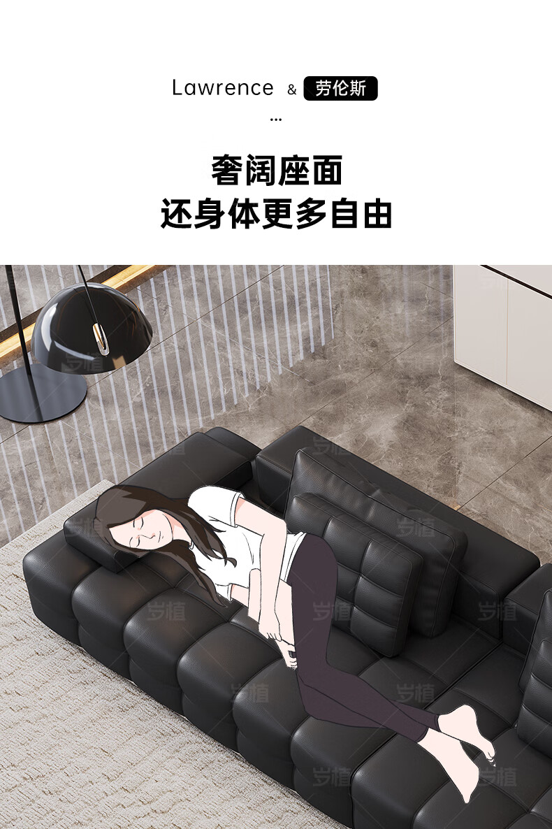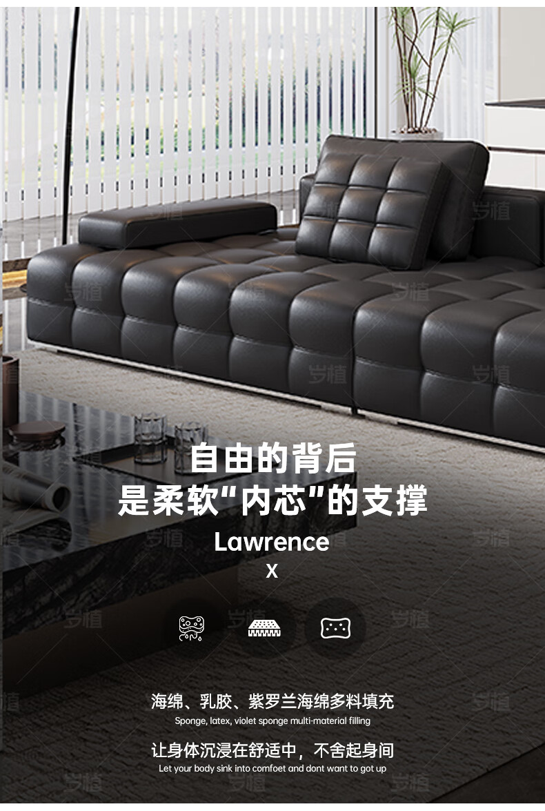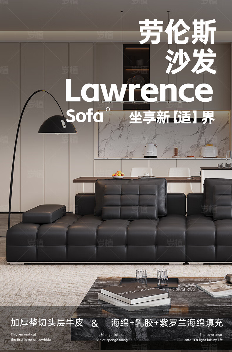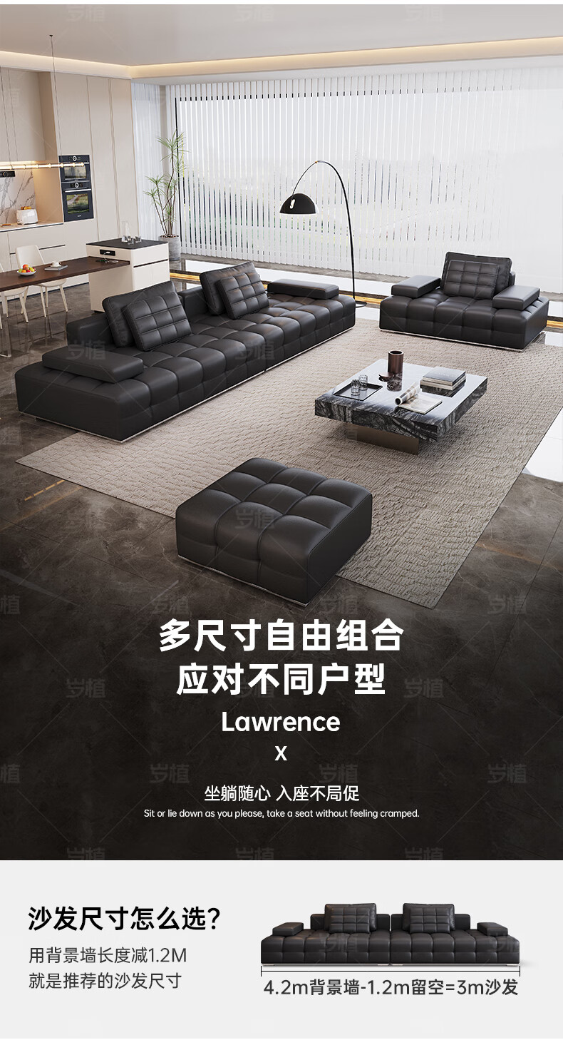 Suizhi government subsidizes Italian simple Lawrence leather sofa lazy sofa living room size leather art sofa 2.8 meters straight upgraded stainless steel bottom frame 2.2mm thickened first layer cowhide 100cm wide