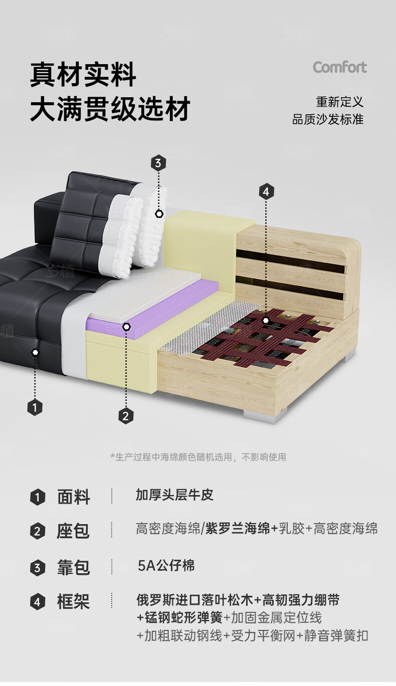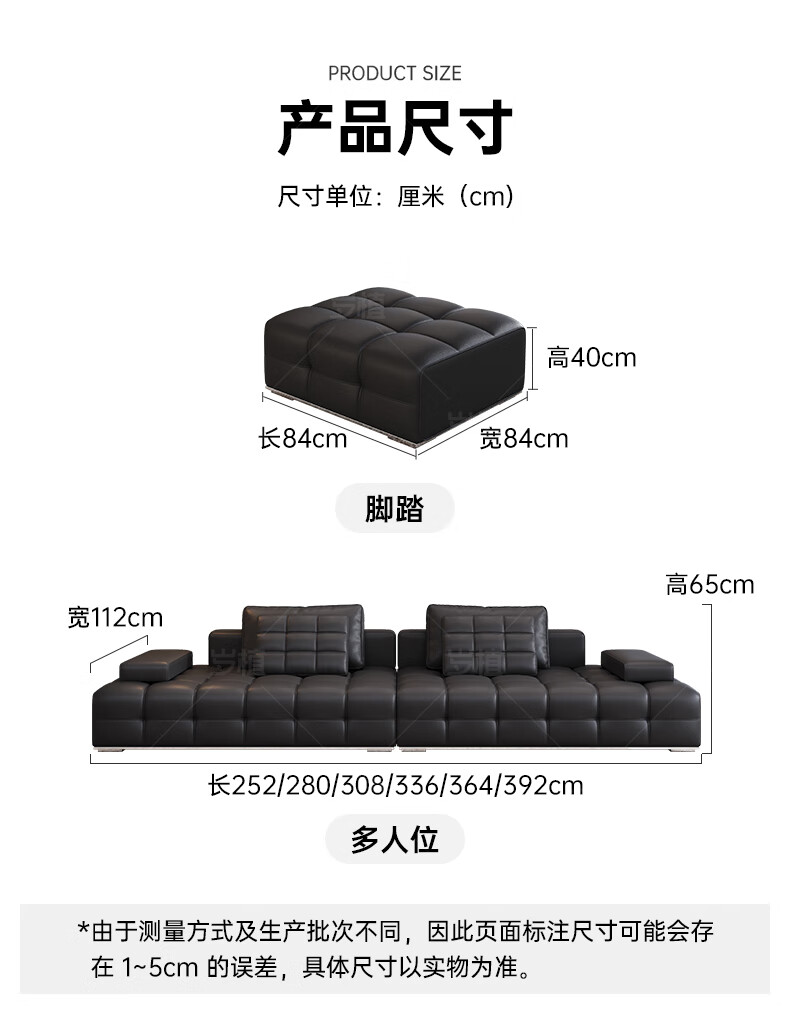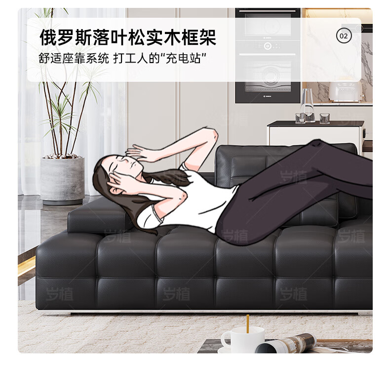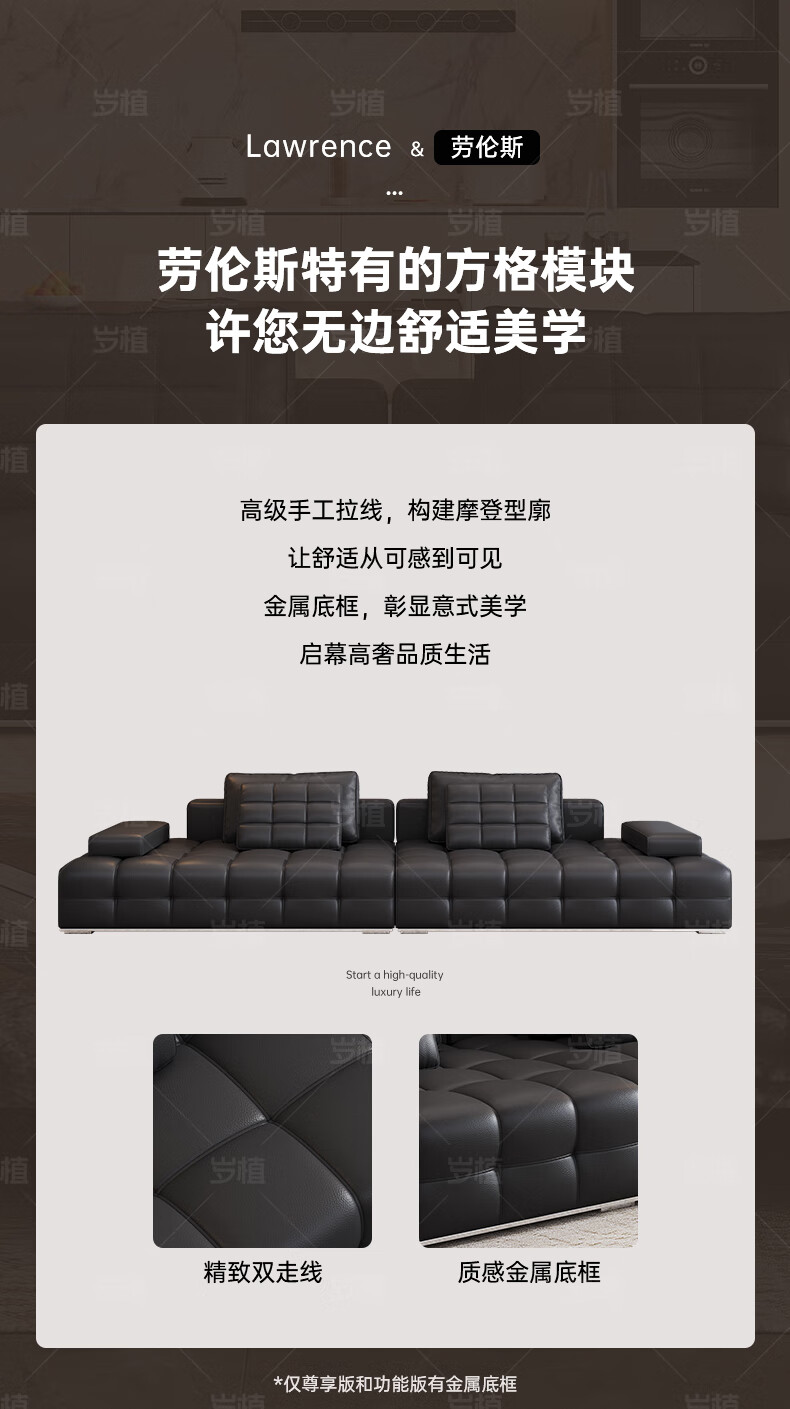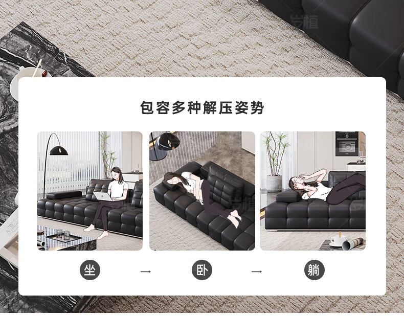 Suizhi government subsidizes Italian simple Lawrence leather sofa lazy sofa living room size leather art sofa 2.8 meters straight upgraded stainless steel bottom frame 2.2mm thickened first layer cowhide 100cm wide