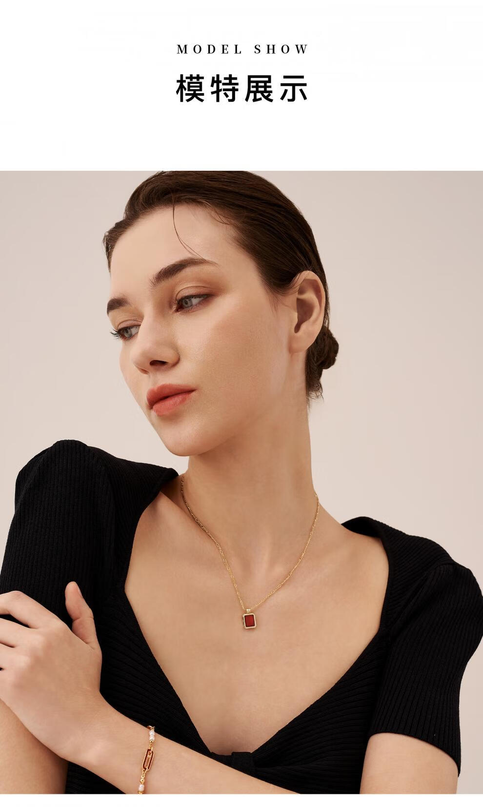 Amber Lollipop new product red agate necklace women's gemstone pendant neck chain clavicle chain birthday gift red (red agate)
