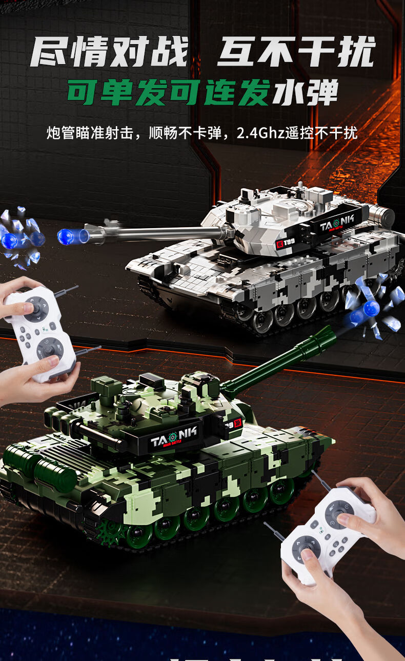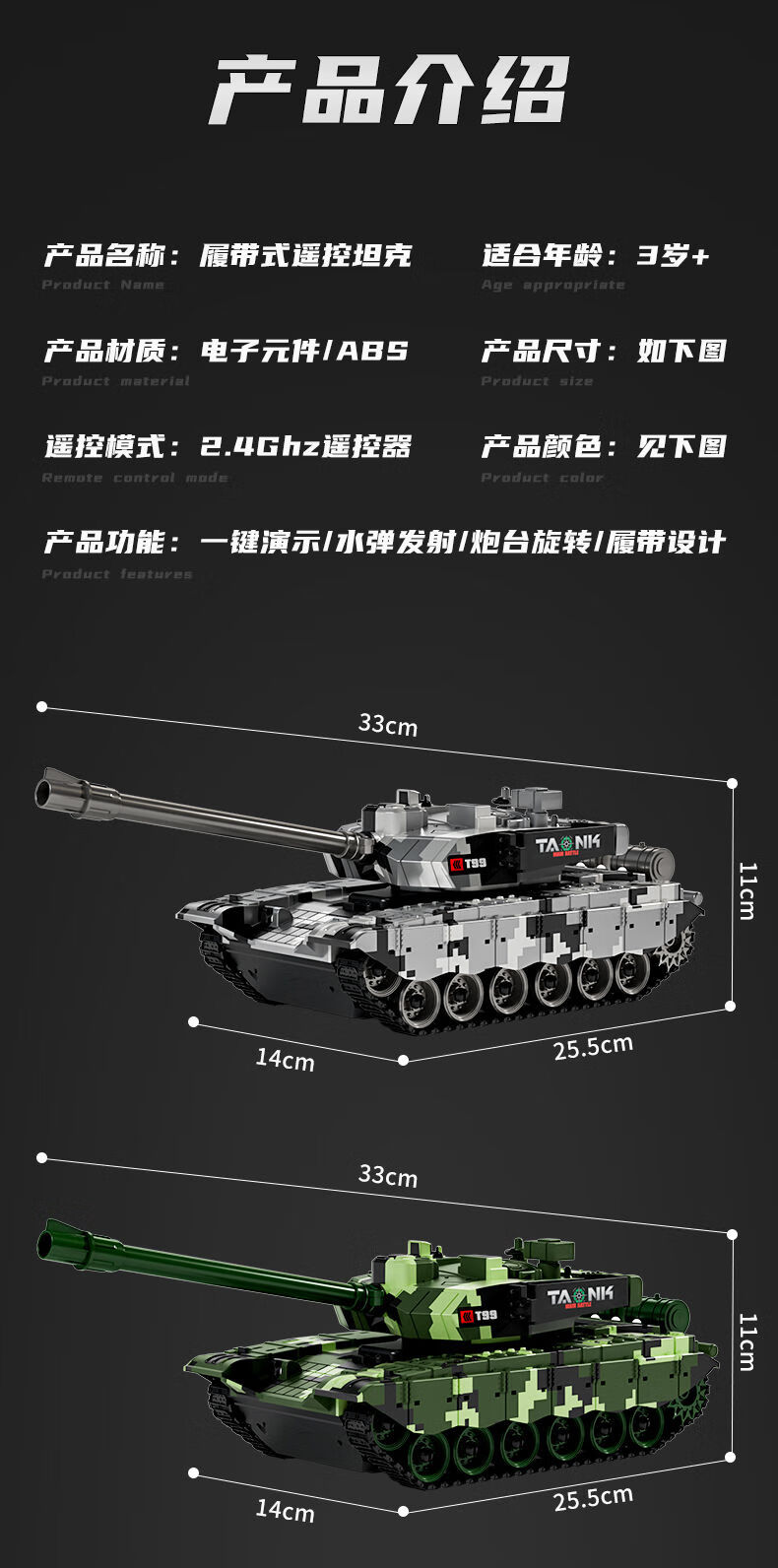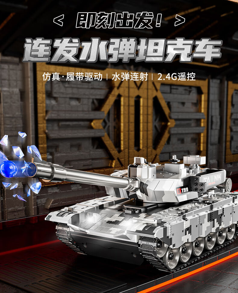 Water bomb remote control crawler tank car can launch 99-type children's electric T90 model simulation boy car Water bomb sound and light gift box 13-channel 99-type metal silver hand play recommendation two sets of rechargeable batteries + remote control
