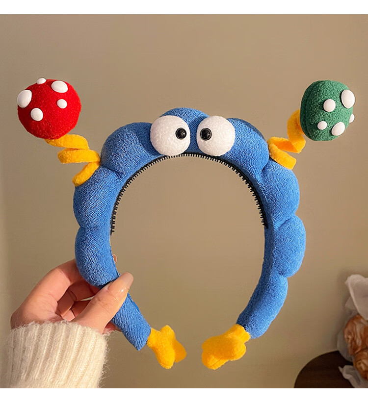 XPEL cute twist stick big-eyed boy face wash headband for women 2025 new funny hair clip with toothed anti-slip headband headwear blue big-eyed boy plush headband 1 piece