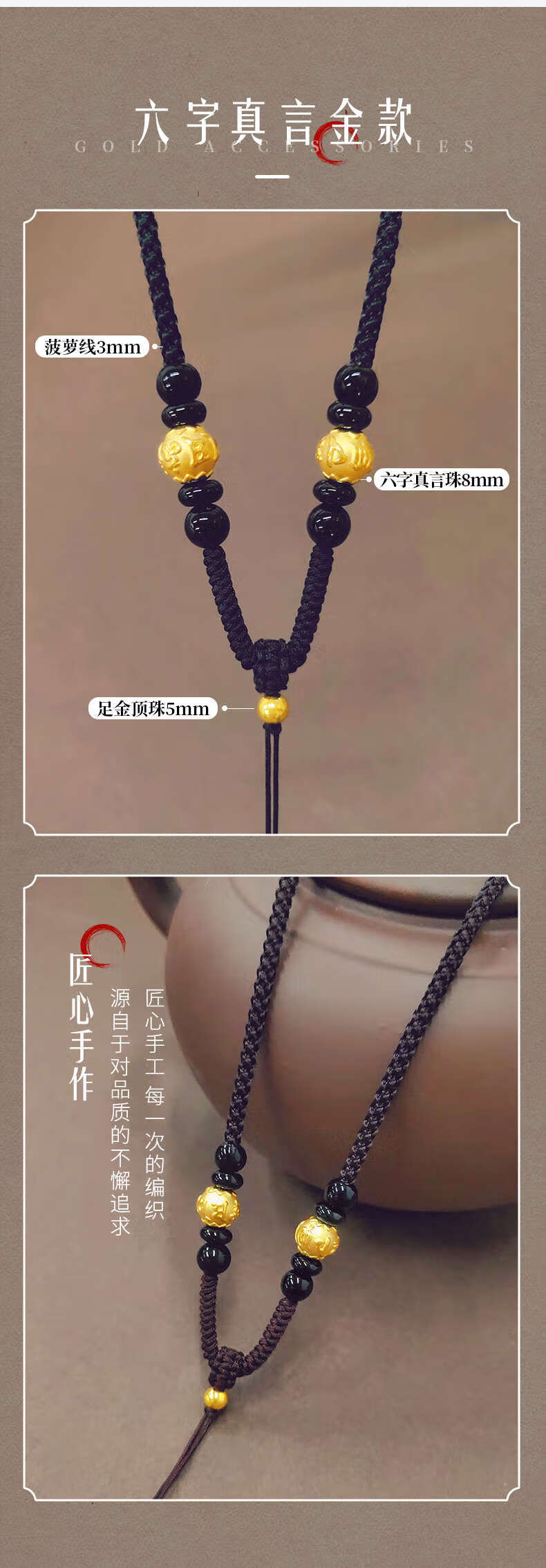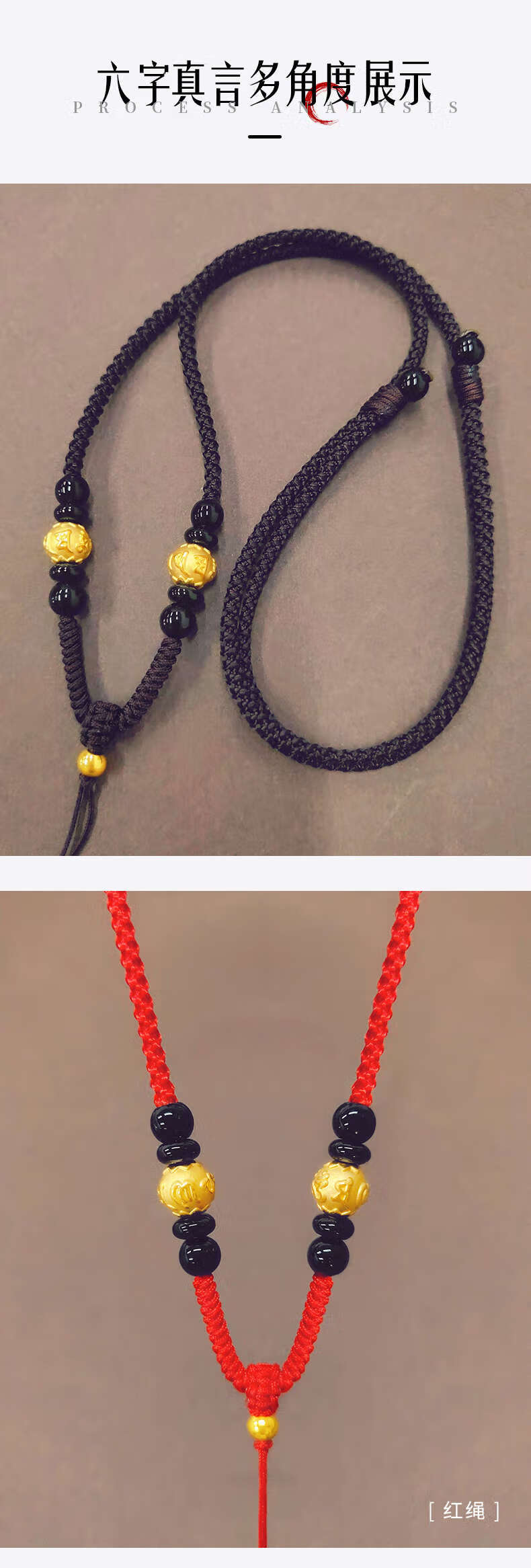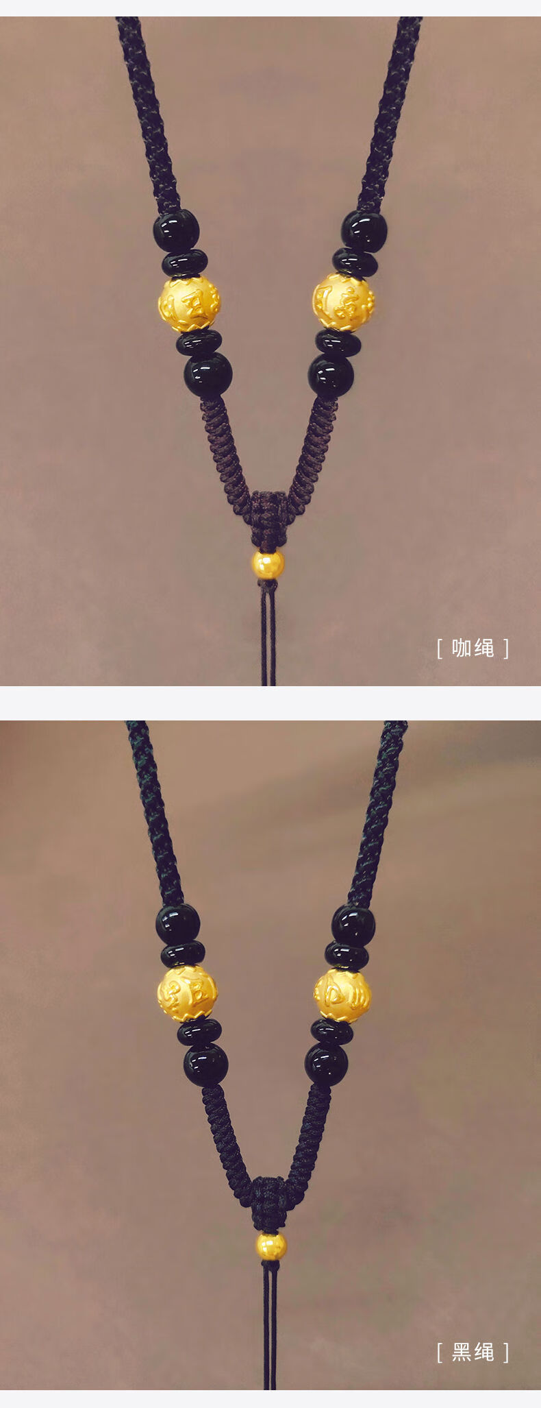 Chili ancient gold pendant lanyard for men and women 999 pure gold transfer beads six-character mantra red and black coffee necklace rope six-character mantra black 40-70cm adjustable
