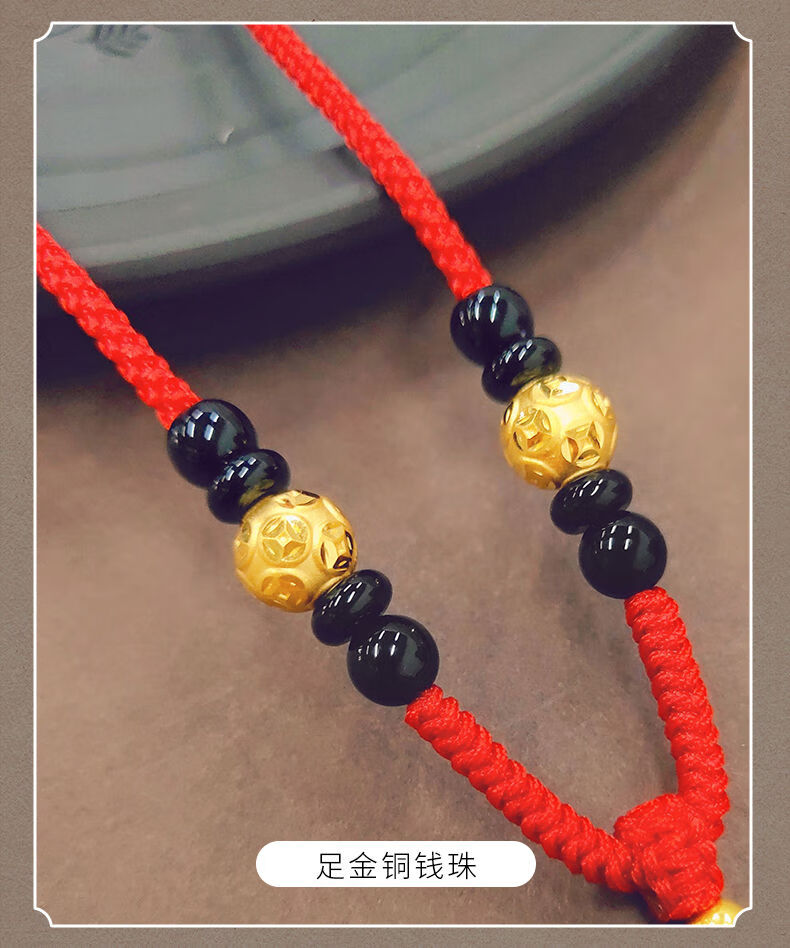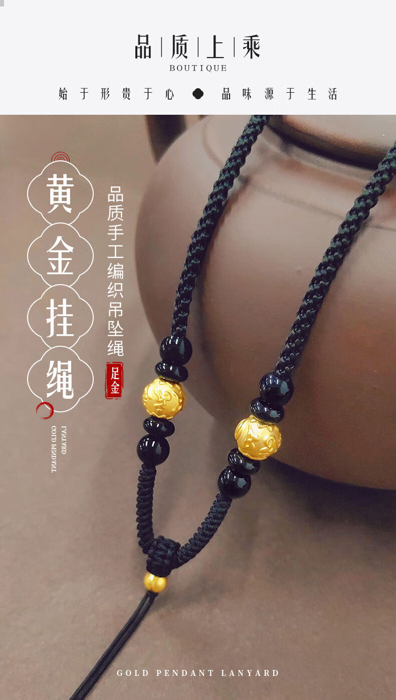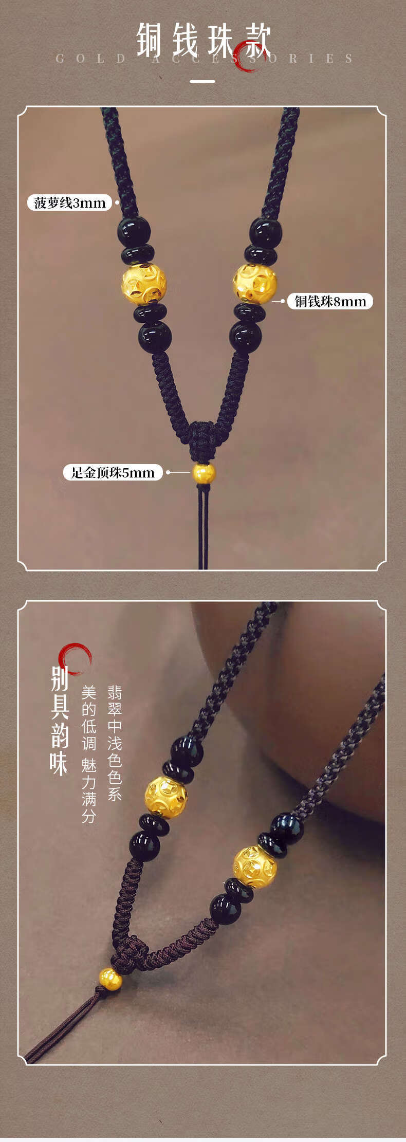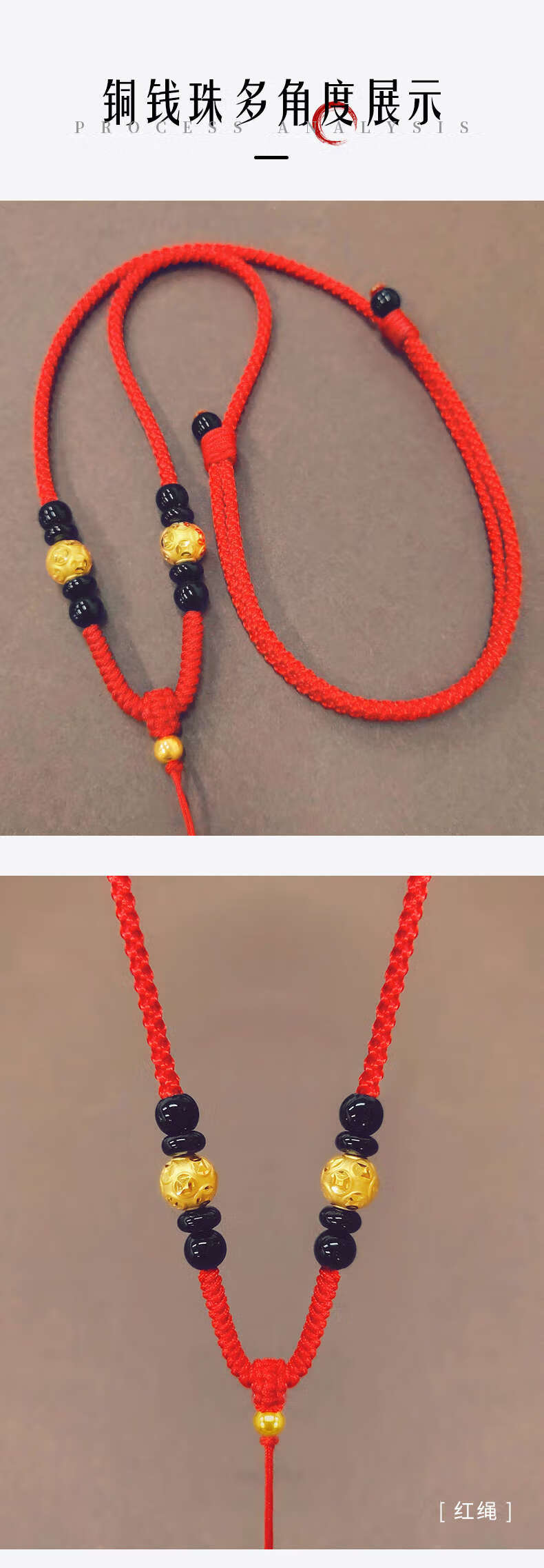 Chili ancient gold pendant lanyard for men and women 999 pure gold transfer beads six-character mantra red and black coffee necklace rope six-character mantra black 40-70cm adjustable