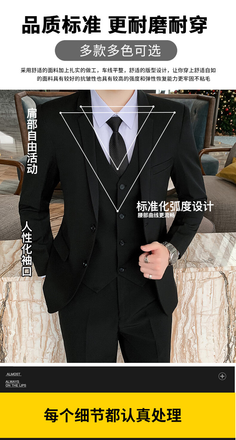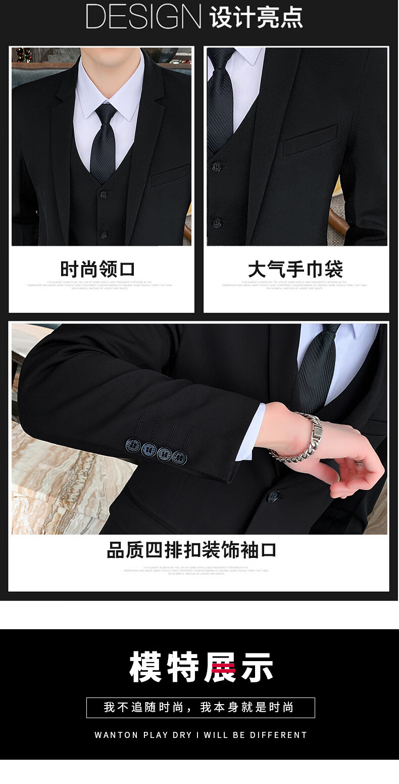 Woodpecker (TUCANO) suit men's Korean casual business formal jacket slim fit groomsmen and groom wedding dress no-iron suit black suit + white shirt + tie S
