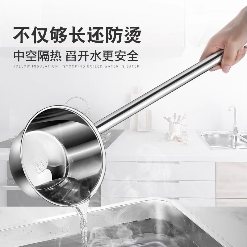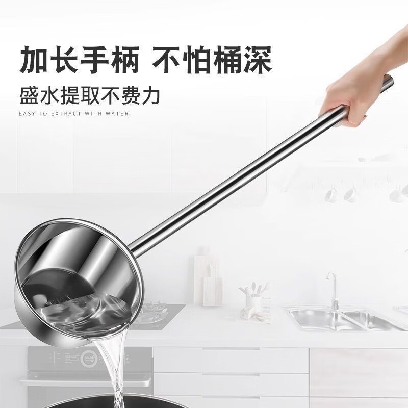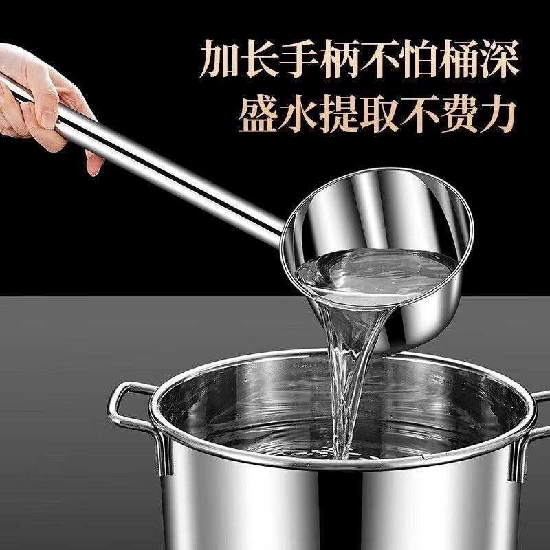 Thickened stainless steel water spoon with long handle, kitchen large water ladle, water ladle, water ladle, household anti-scalding iron ladle, long handle stainless steel ladle - 2 pieces
