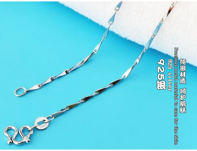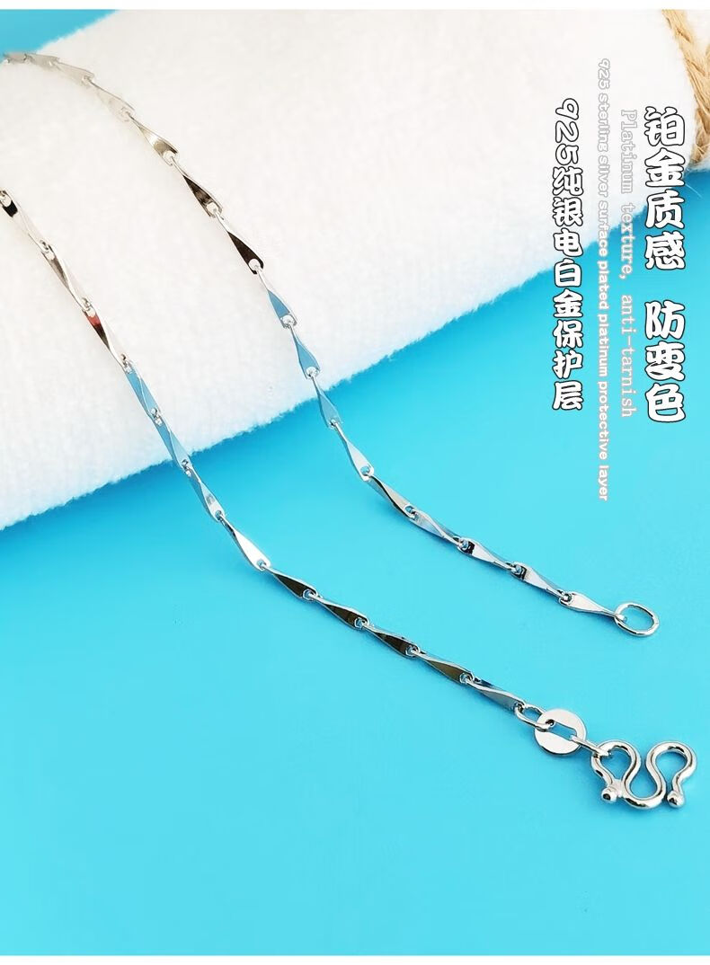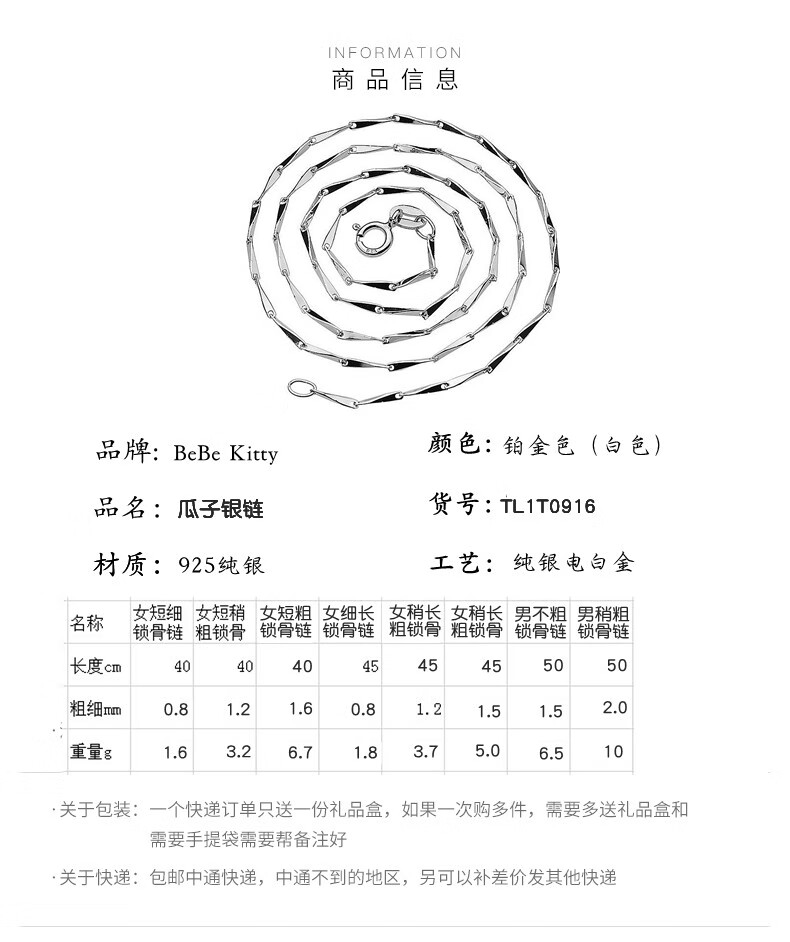 Chili sterling silver melon seed chain for men and women thickened and long S925 silver platinum plated necklace with chain clavicle chain naked chain 40 cm 0.8 mm 1.5 g