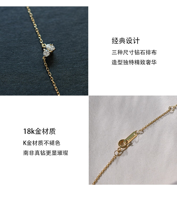 Chili 18K gold diamond pendant necklace women's high-end color gold clavicle chain 520 gift for girlfriend Necklace ready stock 40+3cm