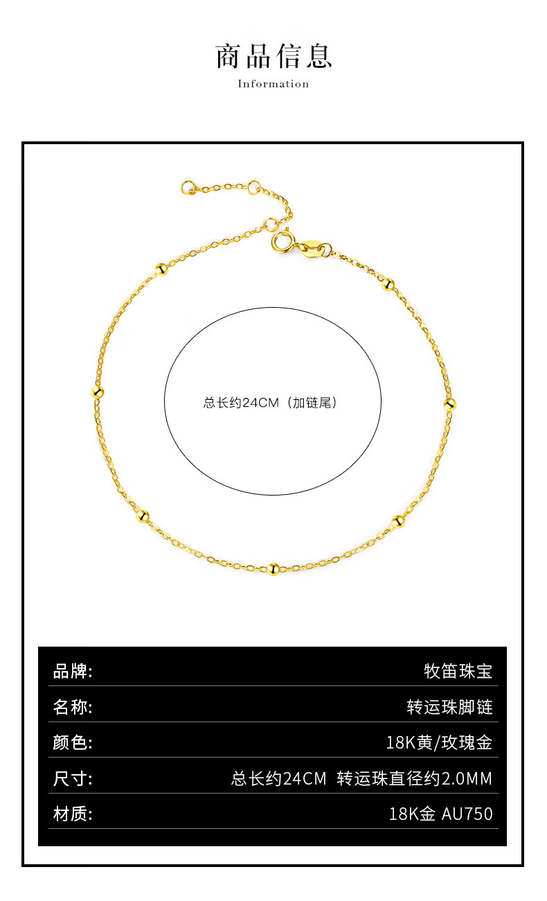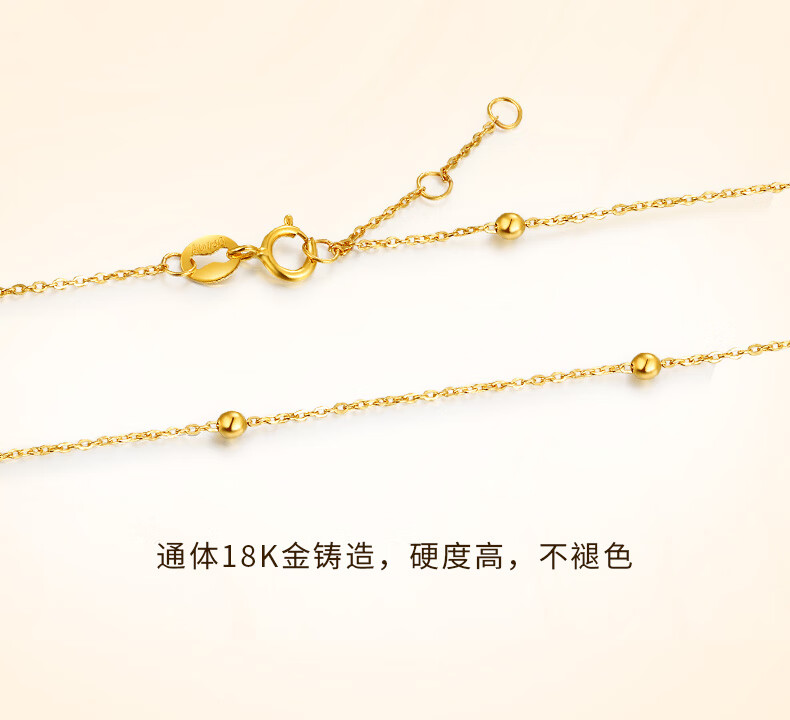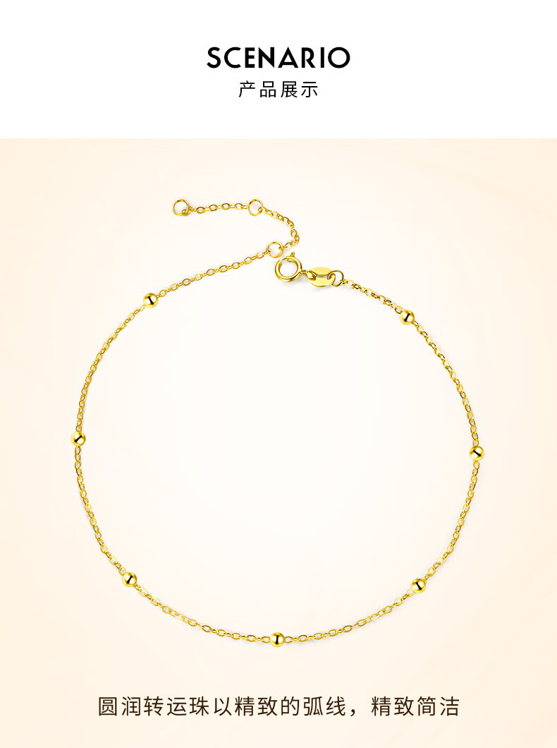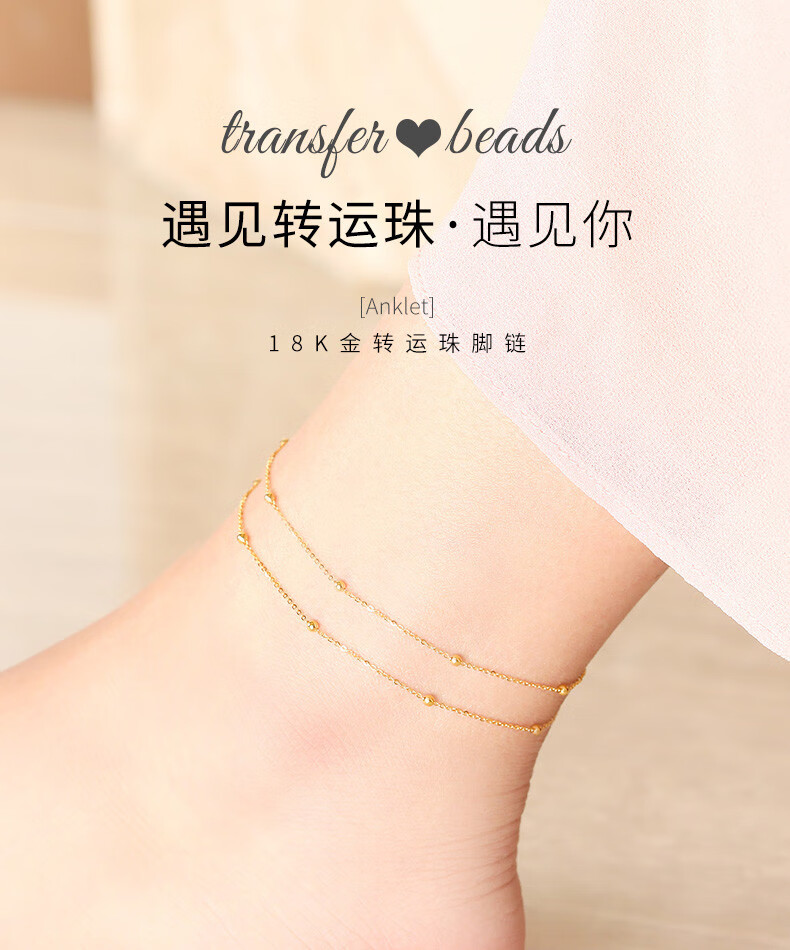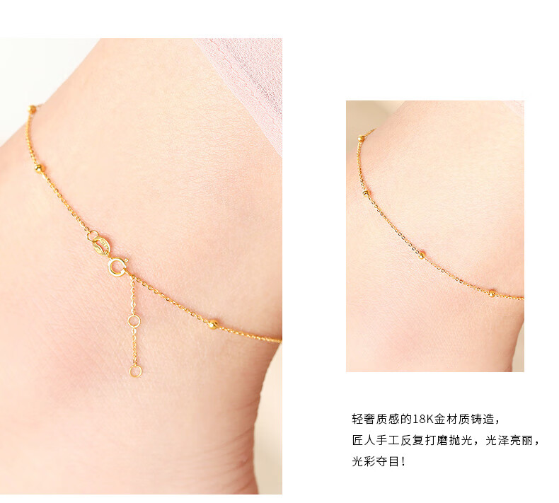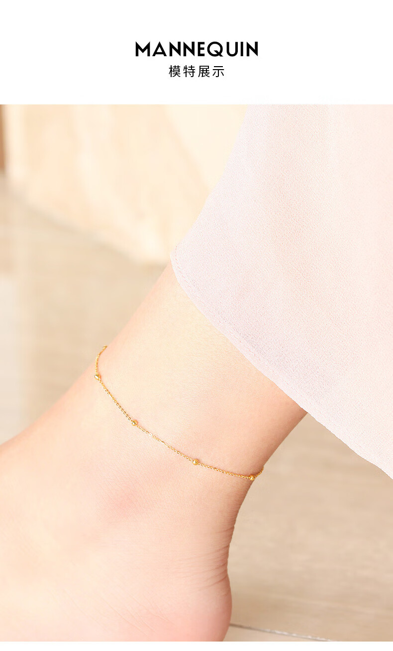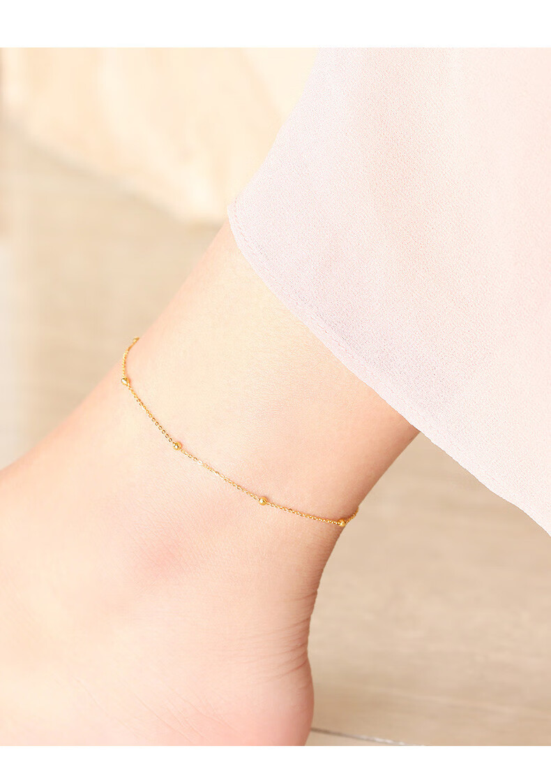 Chili 18K gold anklet women's transfer beads small gold beads round beads adjustable rose gold color gold fashion au750 anklet 18K gold