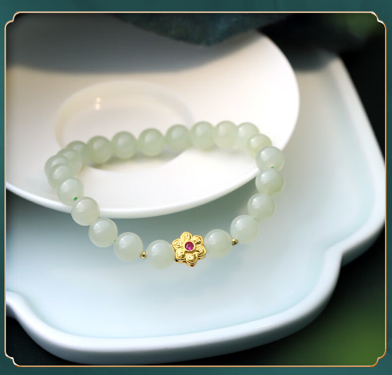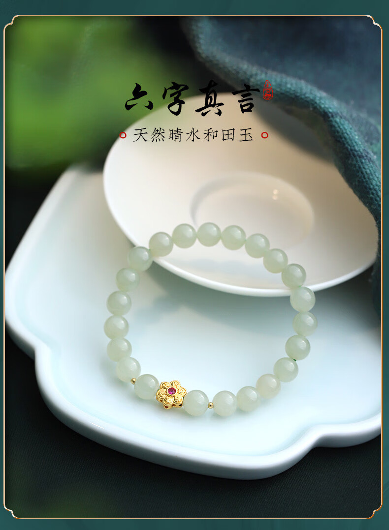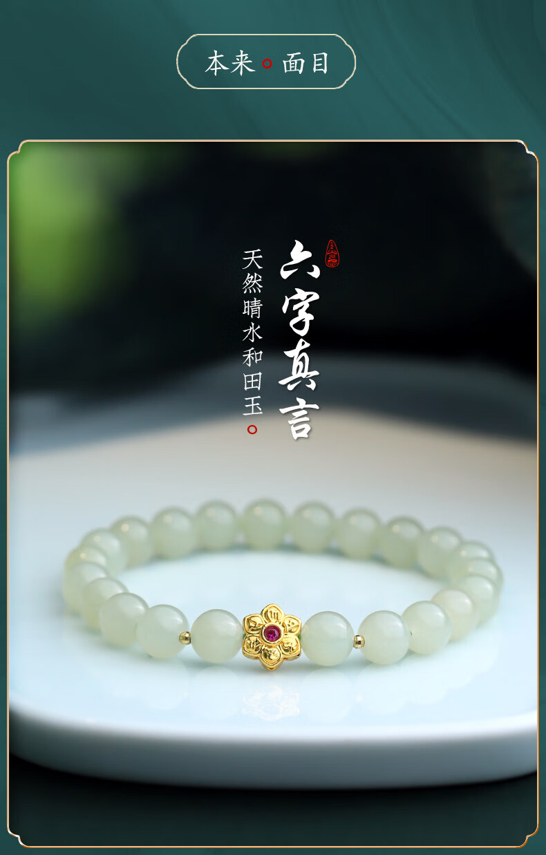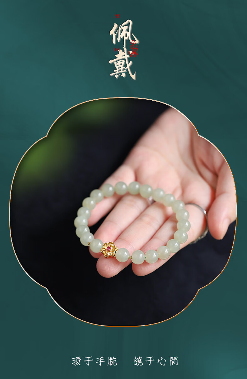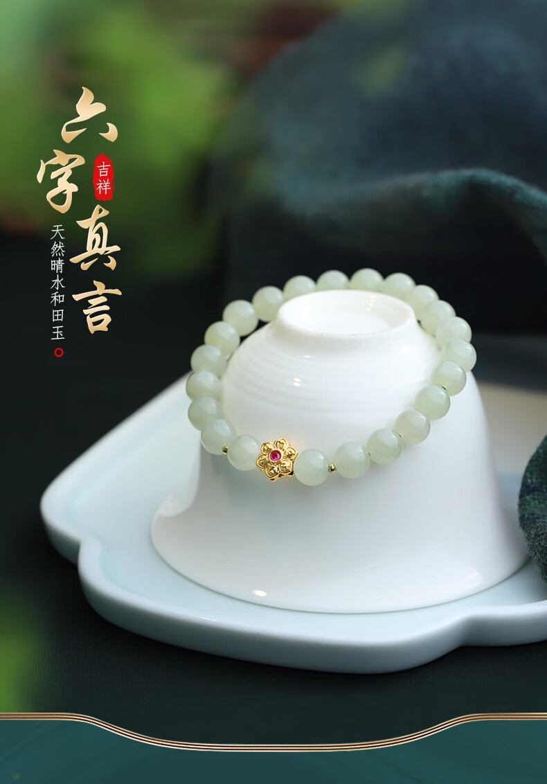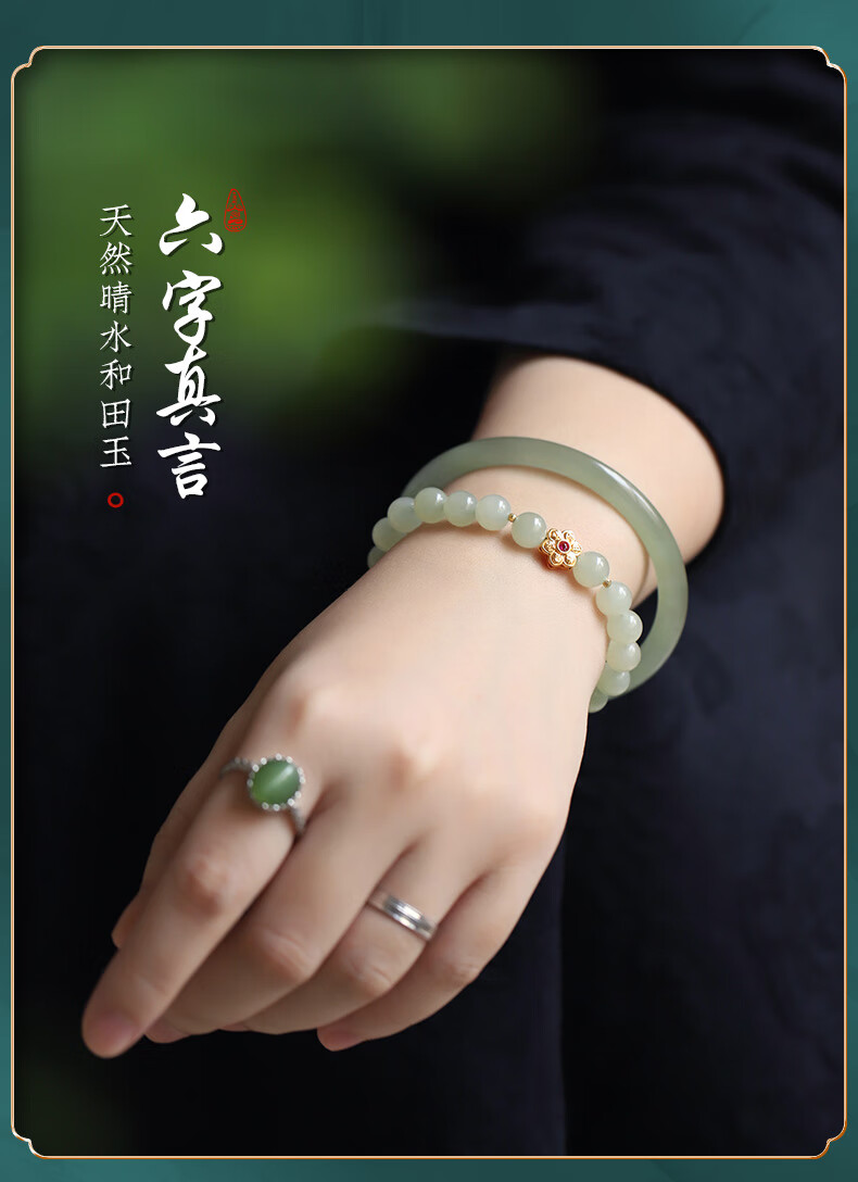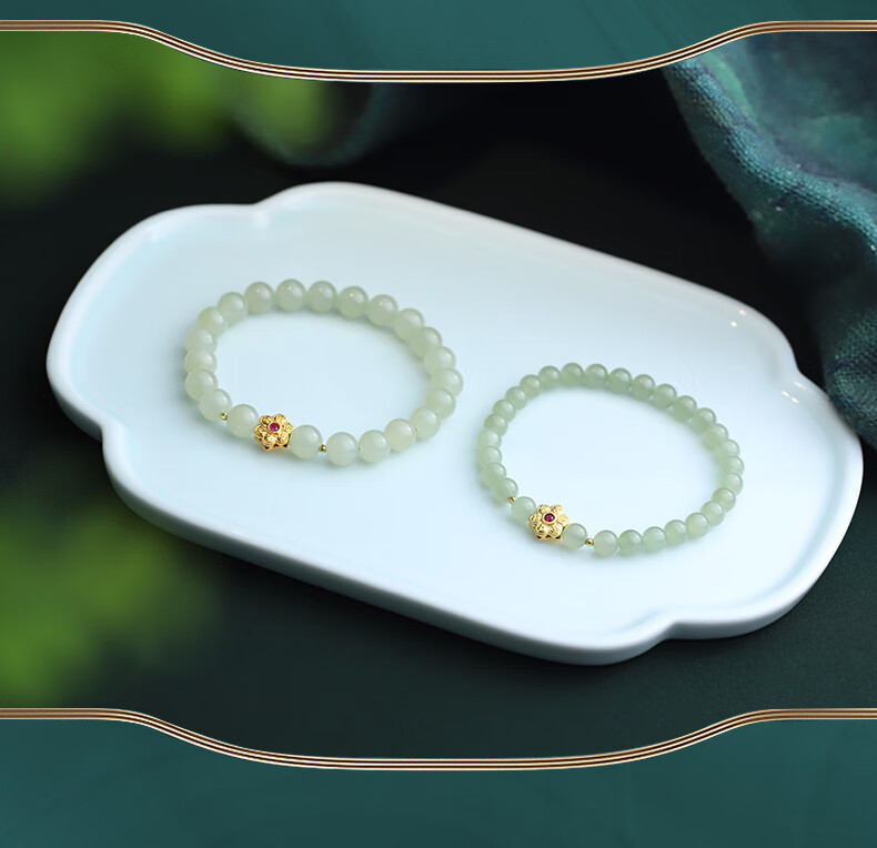 Chili 2025 Fashion Design Natural Ice Clear Water Hetian Jade Bracelet Women's Jade Gold Bracelet Light Luxury Gift About 6mm
