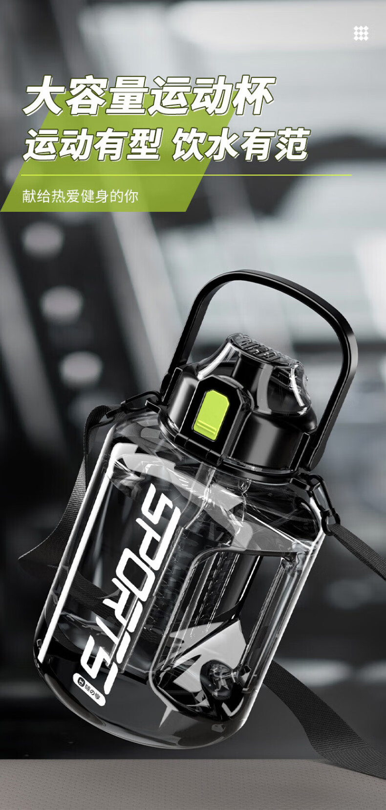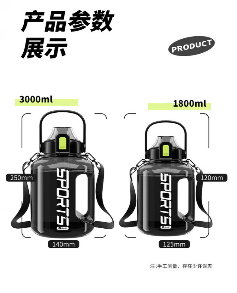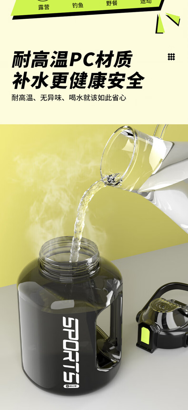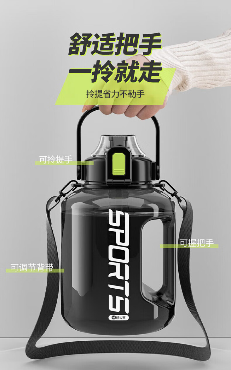 PCXZSKLEF German water cup large large capacity 2025 new men's sports water bottle tons of space belly cup strap anti-scalding sports black 1.8L (can hold boiling water) thickened PC + pad