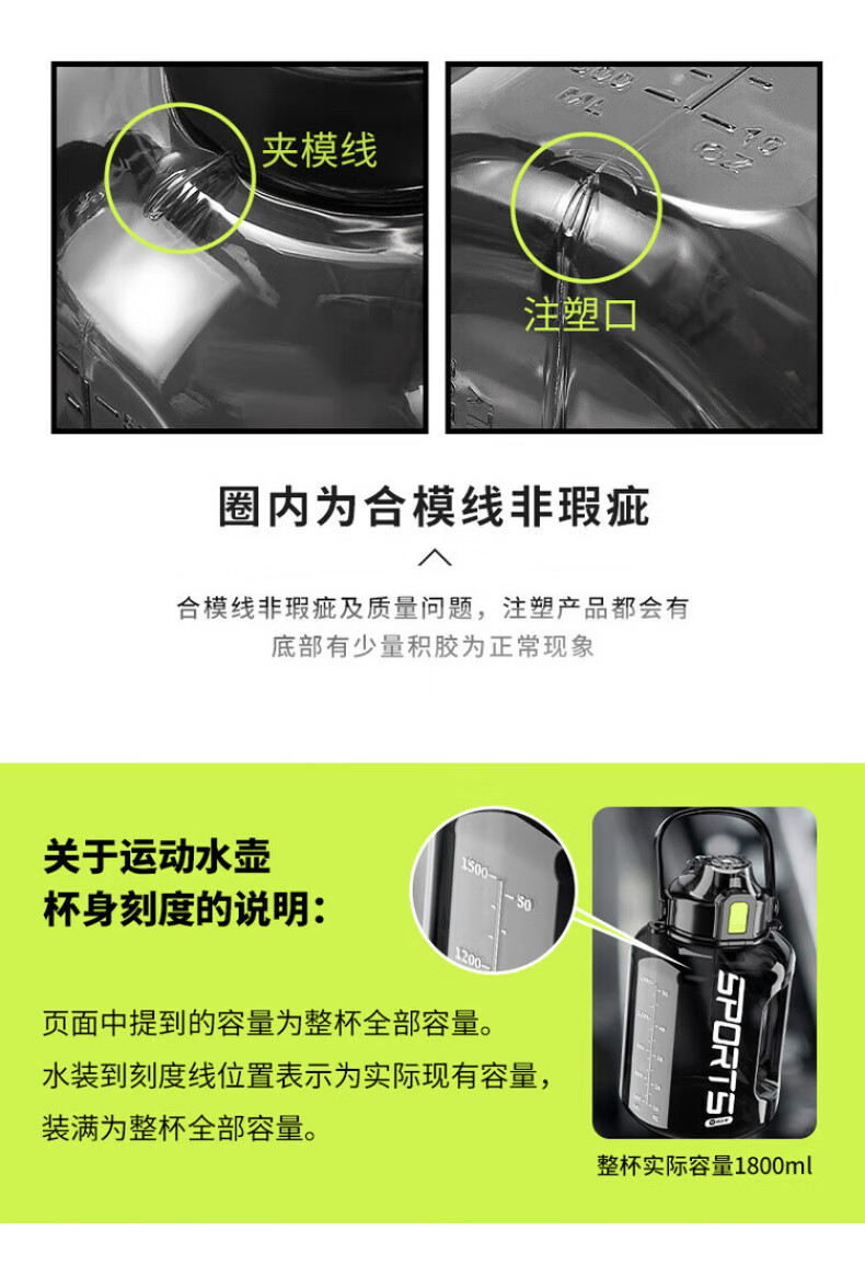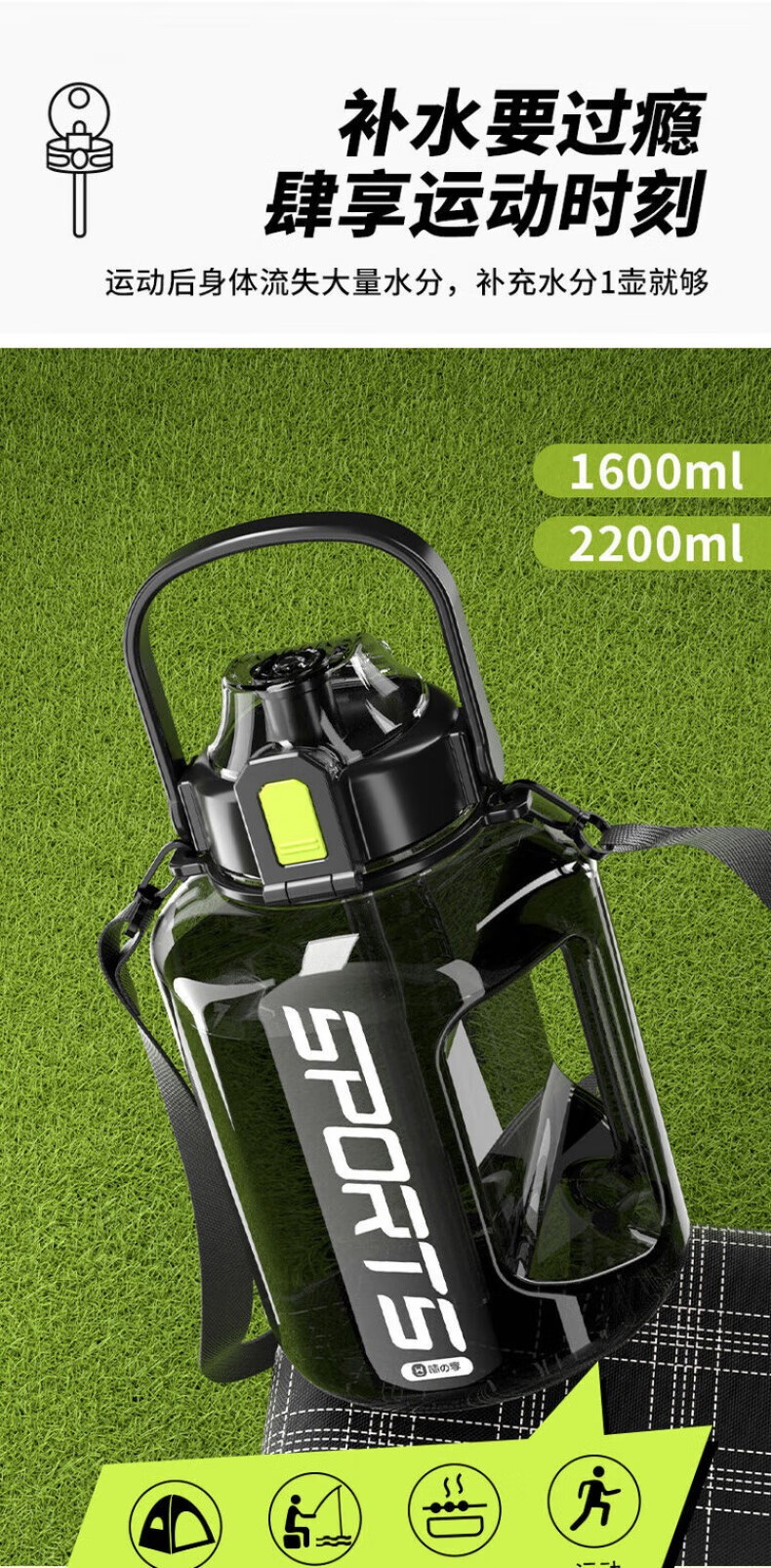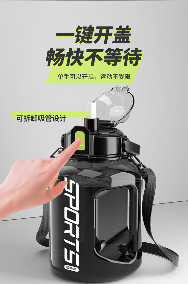 PCXZSKLEF German water cup large large capacity 2025 new men's sports water bottle tons of space belly cup strap anti-scalding sports black 1.8L (can hold boiling water) thickened PC + pad