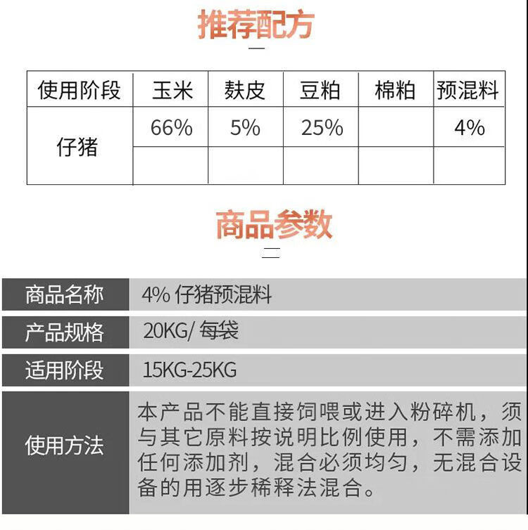 OIMG Mante 4% medium pig premix piglet feed piglet growth pig fattening pig 4% medium and large pig premix fattening