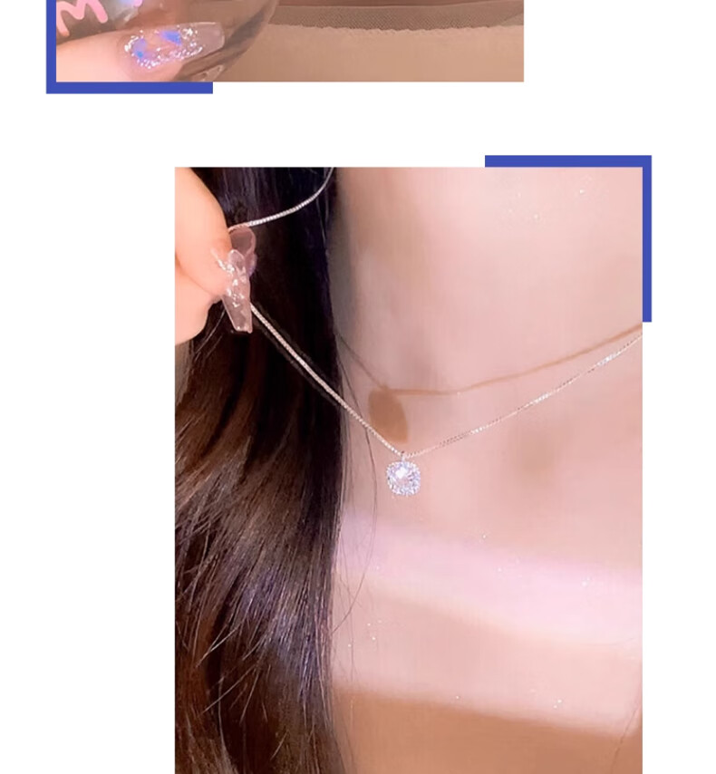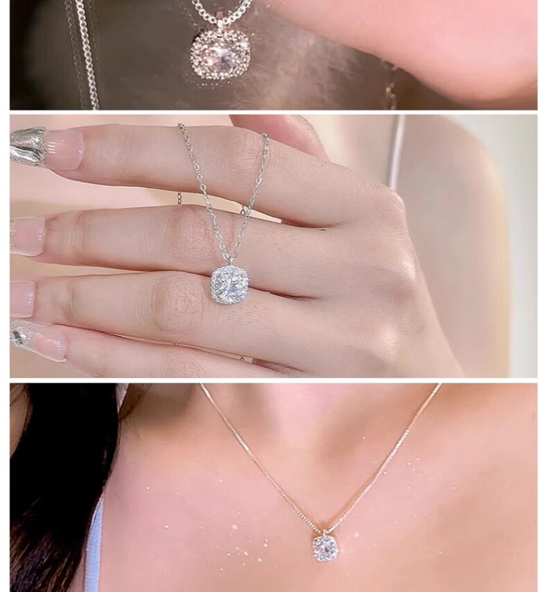 Xinshe S999 sterling silver sugar cube necklace for women, high-end silver clavicle chain to commemorate Valentine's Day and birthday gift for girlfriend, sugar cube necklace