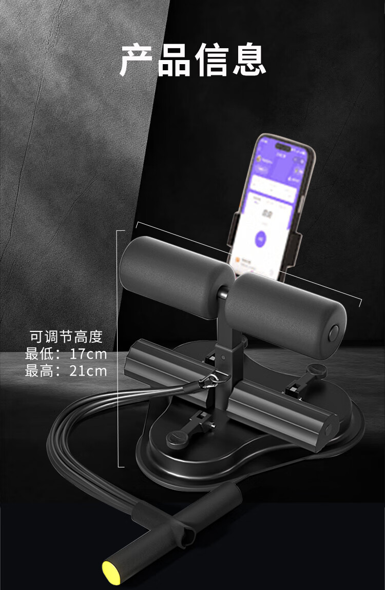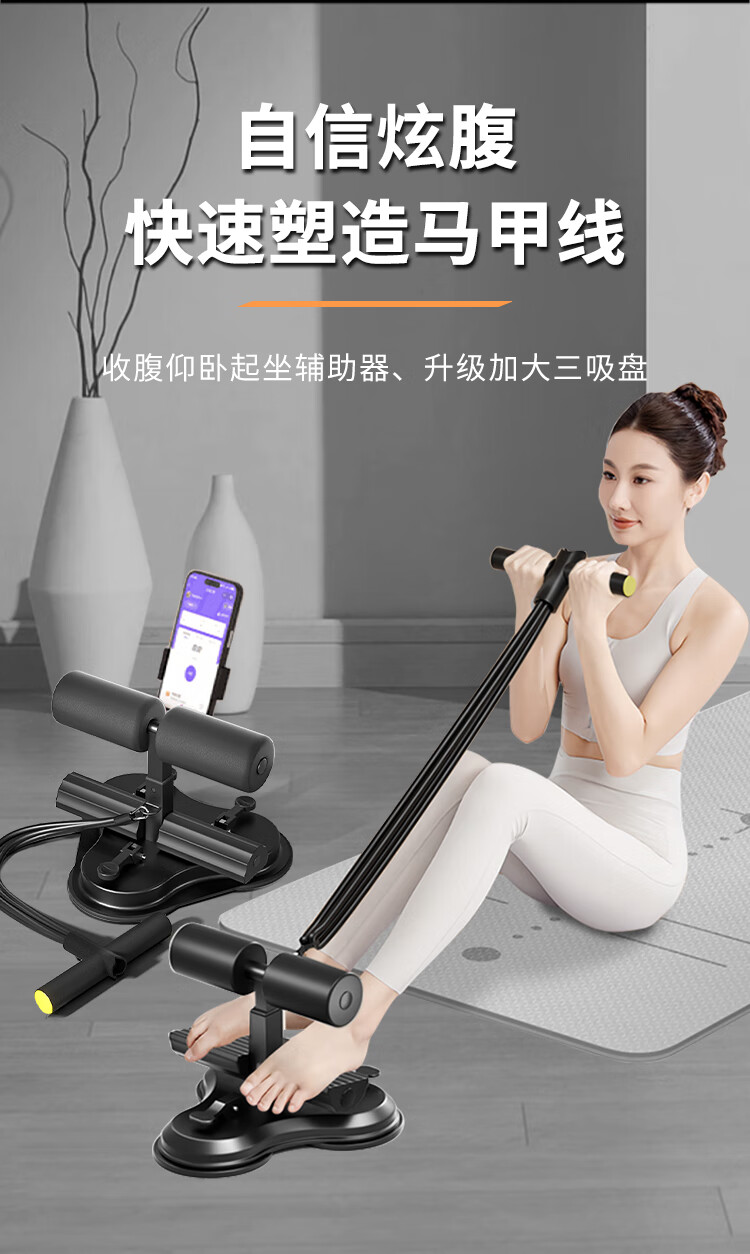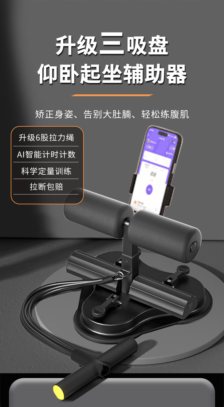 Sit-up assistant double suction cup single suction cup men's and women's fitness equipment sit-ups abdominal muscle training tension rope pink three suction cups - mobile phone holder + counting + pull rope