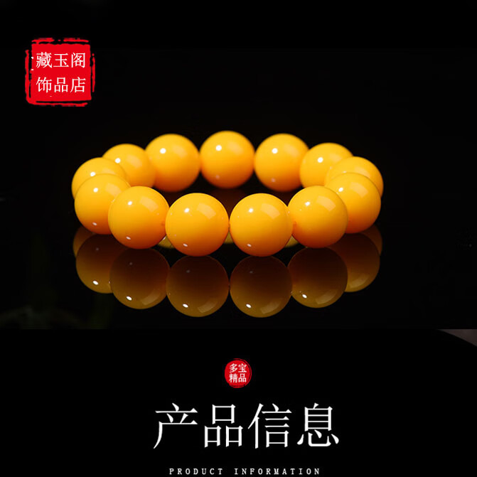 Fat Donglai's same style natural beeswax bracelet single circle full of honey chicken fat yellow for men and women, Russian amber old honey round beads, 20mm large chicken fat yellow, 12 beads in a string