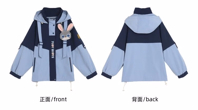 MieLanat Jacket Judy Nick Zootopia Jacket Spring and Autumn New Windproof Warm Couple Windbreaker for Men and Women Blue Overalls with Doll Children's Style 160cm