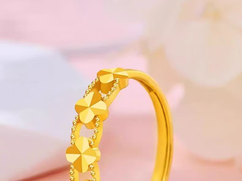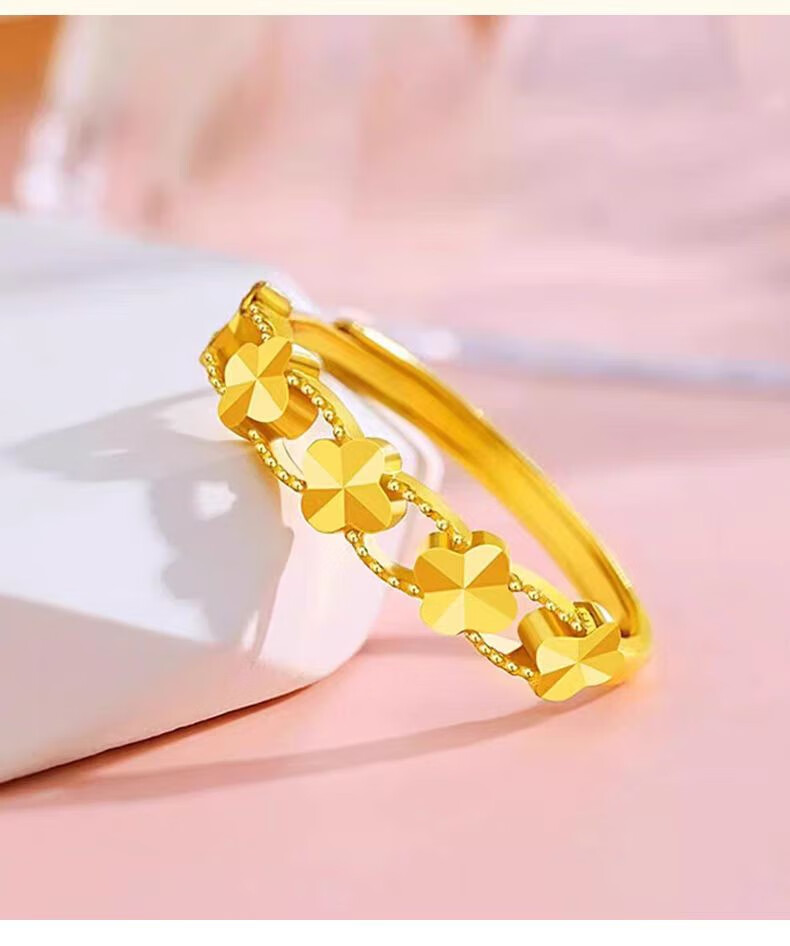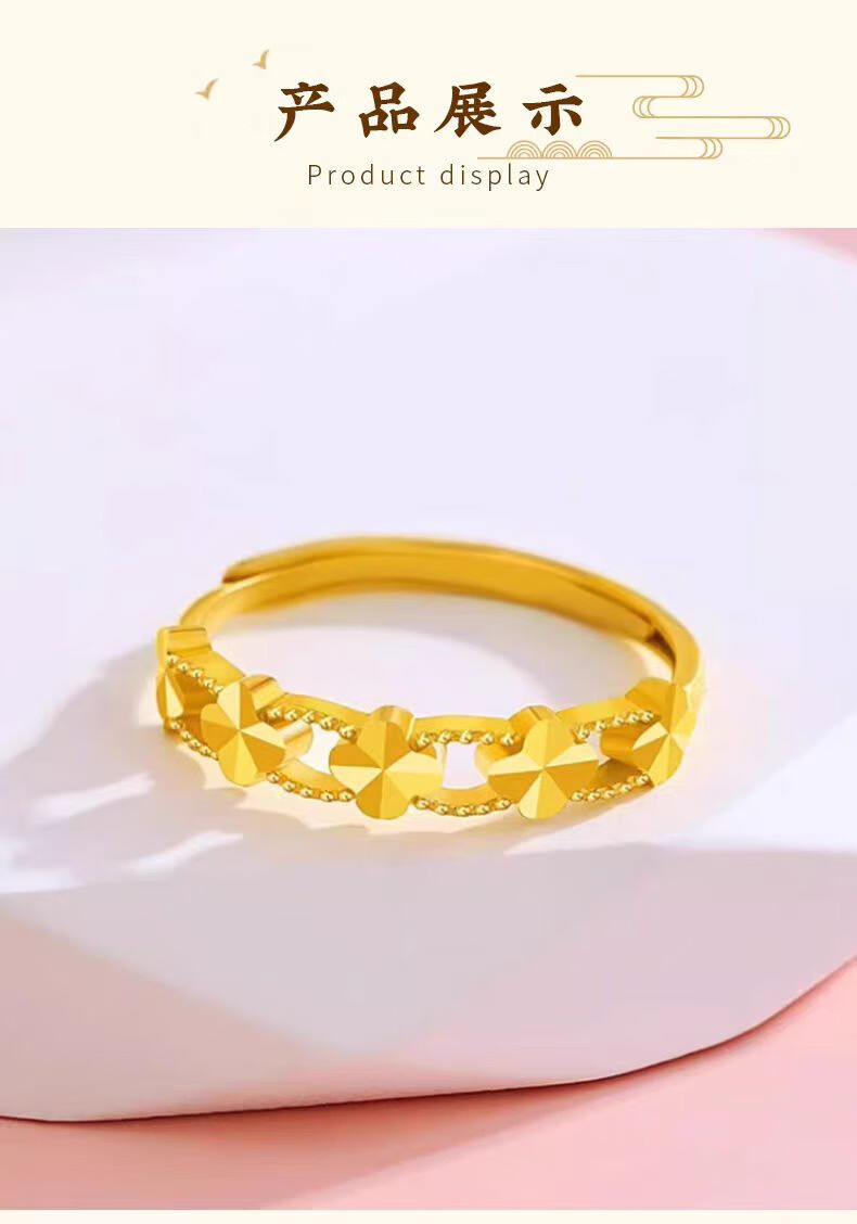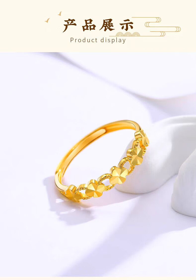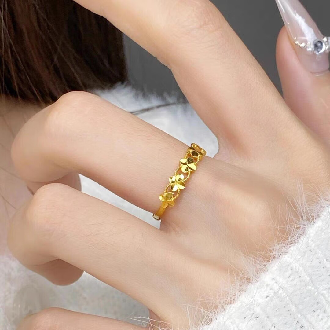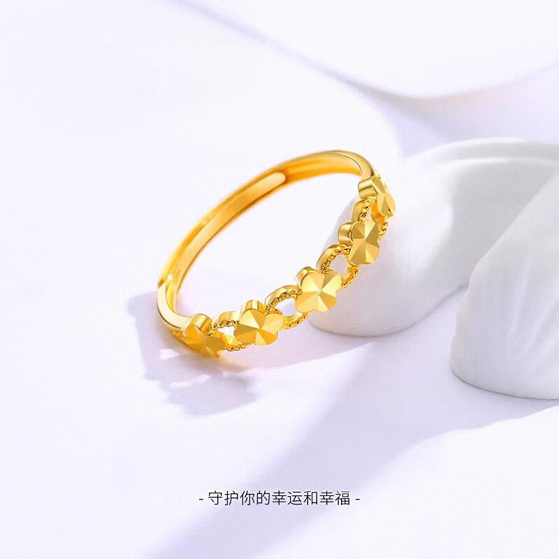 Chuji Lao Phoenix Gold Store gold lucky four-leaf clover ring women's gold 5D hard ring ring 18K color gold lucky four-leaf clover ring
